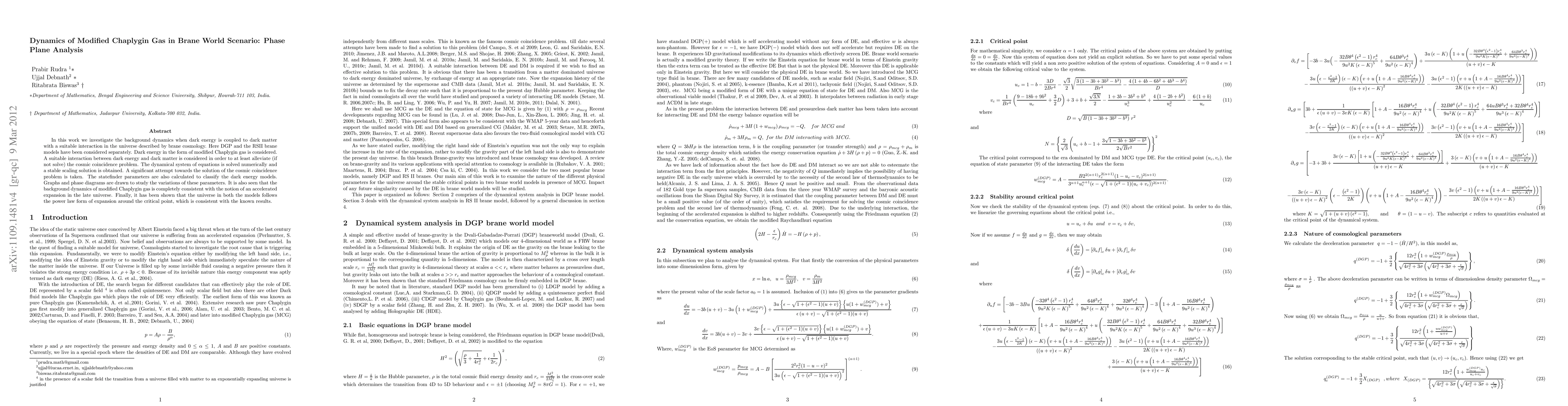 This paper explores the dynamics of modified Chaplygin gas in brane cosmology, specifically in DGP and RSII models, to address the cosmic coincidence problem. Numerical analysis reveals a stable scaling solution and consistent accelerated expansion, with statefinder parameters aiding in the classification of dark energy models.