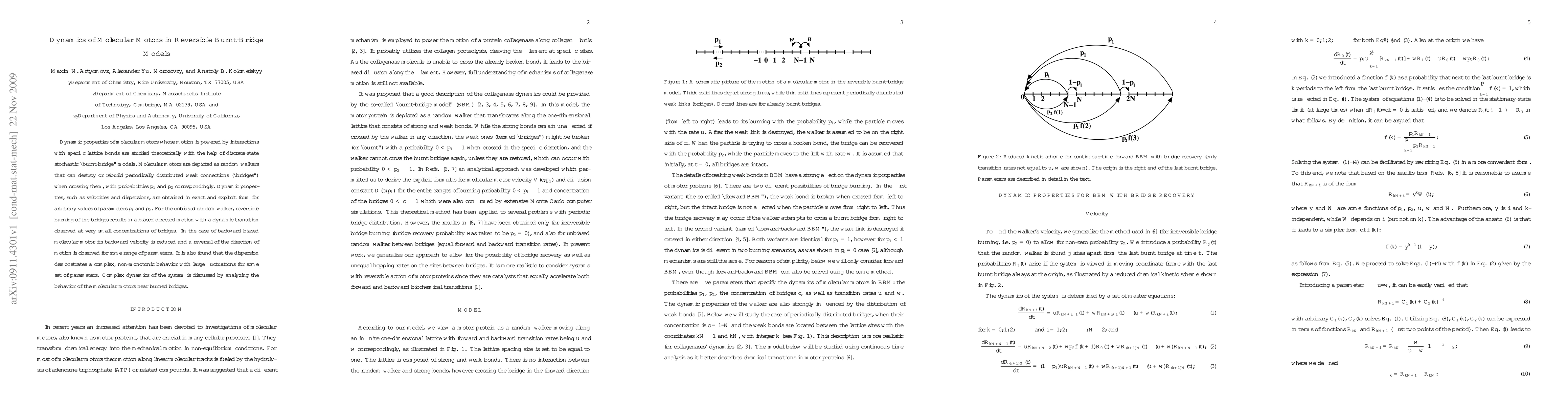 This paper investigates the dynamics of molecular motors modeled as random walkers that can destroy or rebuild weak lattice connections ("bridges") with specific probabilities. It reveals that reversible burning of bridges leads to biased motion and dynamic transitions, with complex behaviors in velocity, dispersion, and directionality depending on the parameters.