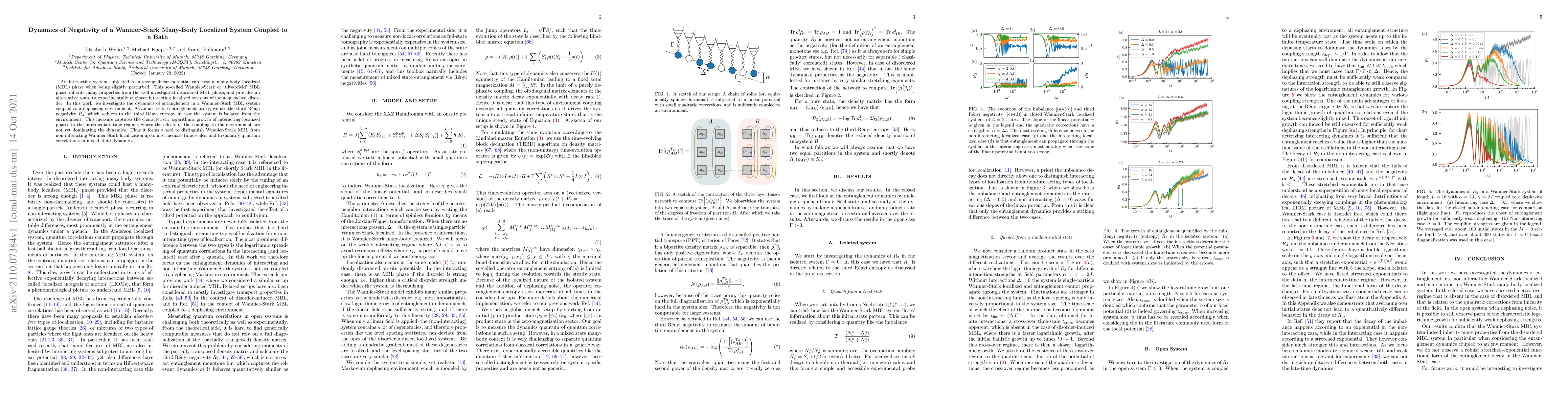 This paper investigates the dynamics of entanglement in a Wannier-Stark many-body localized system coupled to a dephasing environment, using third Rényi negativity as a measure. It reveals the characteristic logarithmic growth of entanglement in the intermediate-time regime, distinguishing Wannier-Stark MBL from non-interacting localization.