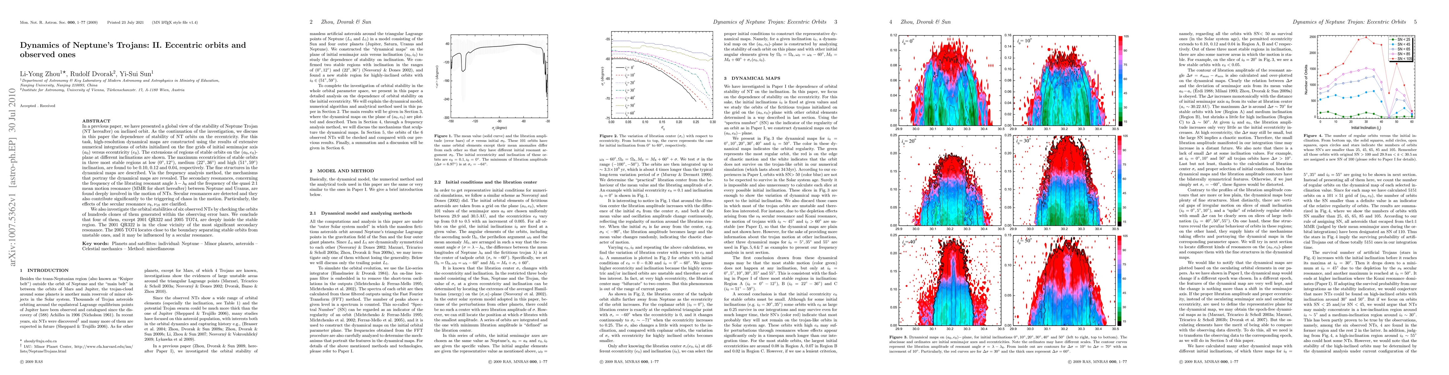 In a previous paper, we have presented a global view of the stability of Neptune Trojan (NT hereafter) on inclined orbit. We discuss in this paper the dependence of stability of NT orbits on the eccentricity. High-resolution dynamical maps are constructed using the results of extensive numerical integrations of orbits initialized on the fine grids of initial semimajor axis (a0) versus eccentricity (e0). The extensions of regions of stable orbits on the (a0, e0) plane at different inclinations are shown. The maximum eccentricities of stable orbits in three most stable regions at low (0, 12deg.), medium (22,36deg.) and high (51, 59deg.) inclination, are found to be 0.10, 0.12 and 0.04, respectively. The fine structures in the dynamical maps are described. Via the frequency analysis method, the mechanisms that portray the dynamical maps are revealed. The secondary resonances, concerning the frequency of the librating resonant angle and the frequency of the quasi 2:1 mean motion resonance between Neptune and Uranus, are found deeply involved in the motion of NTs. Secular resonances are detected and they also contribute significantly to the triggering of chaos in the motion. Particularly, the effects of the secular resonance v8, v18 are clarified. We also investigate the orbital stabilities of six observed NTs by checking the orbits of hundreds clones of them generated within the observing error bars. We conclude that four of them, except 2001 QR322 and 2005 TO74, are deeply inside the stable region. The 2001 QR322 is in the close vicinity of the most significant secondary resonance. The 2005 TO74 locates close to the boundary separating stable orbits from unstable ones, and it may be influenced by a secular resonance.