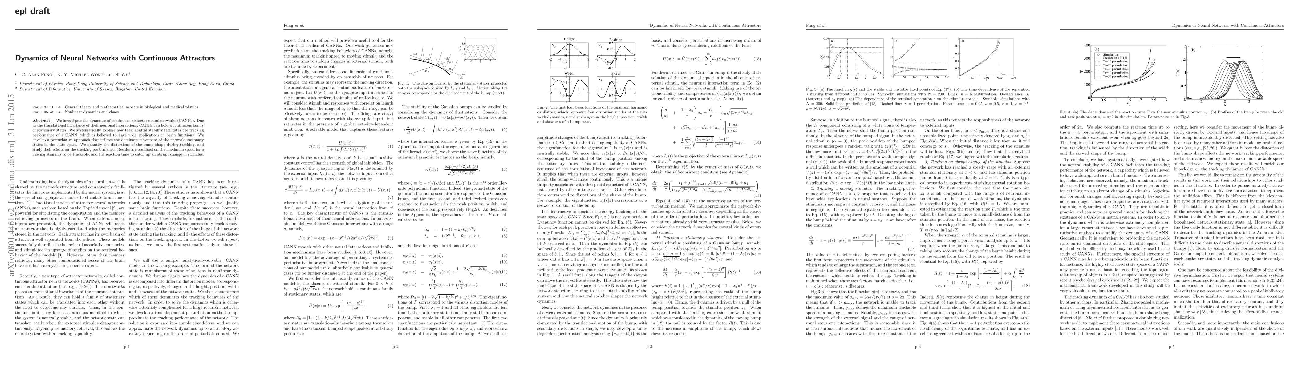 This paper explores the dynamics of continuous attractor neural networks (CANNs), focusing on how their neutral stability enhances tracking performance. It develops a perturbative approach to quantify bump shape distortions during tracking and analyzes the network's maximum speed for tracking and reaction time to stimulus changes.