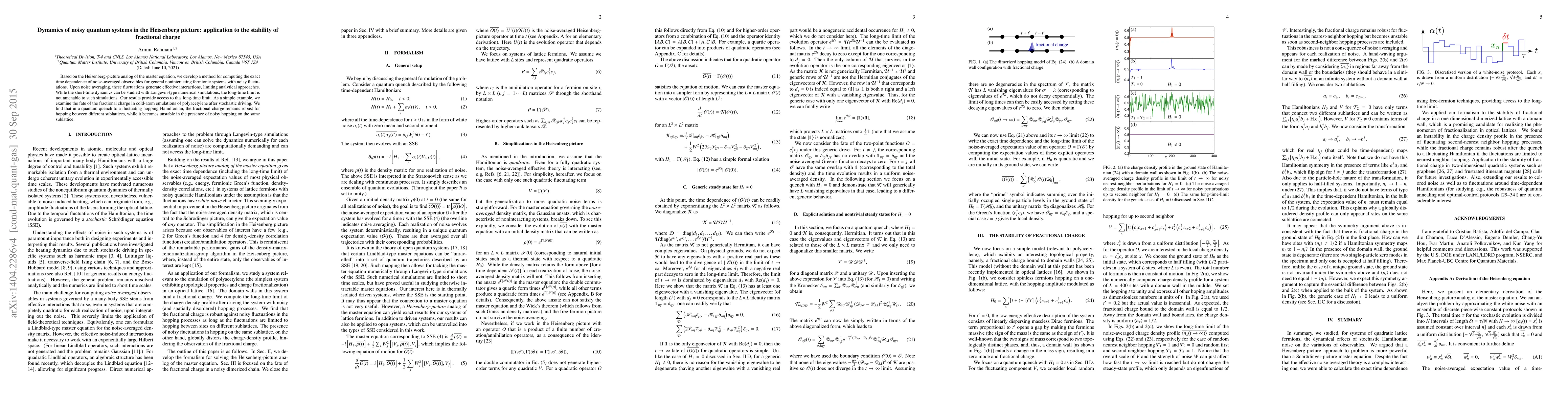 Researchers developed a method to study long-time dynamics of noisy quantum systems, finding that fractional charge remains stable in certain conditions but becomes unstable in others.