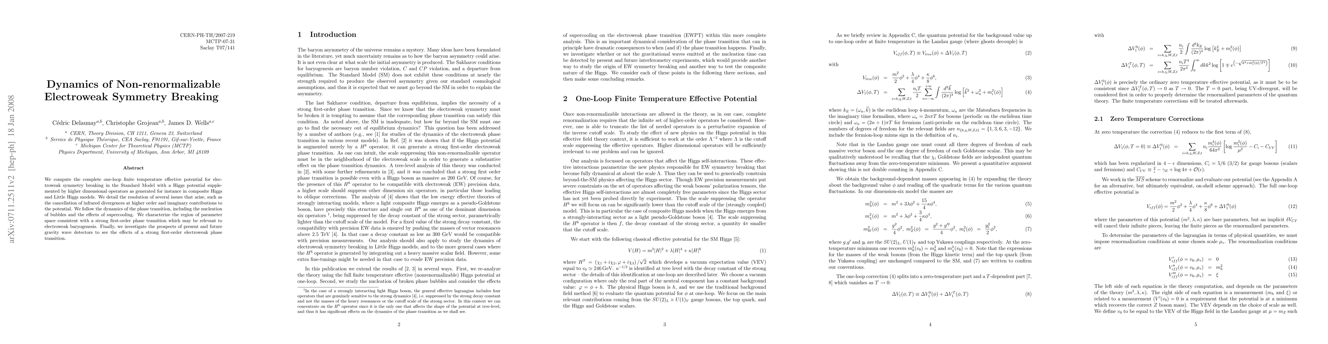 We compute the complete one-loop finite temperature effective potential for electroweak symmetry breaking in the Standard Model with a Higgs potential supplemented by higher dimensional operators as generated for instance in composite Higgs and Little Higgs models. We detail the resolution of several issues that arise, such as the cancellation of infrared divergences at higher order and imaginary contributions to the potential. We follow the dynamics of the phase transition, including the nucleation of bubbles and the effects of supercooling. We characterize the region of parameter space consistent with a strong first-order phase transition which may be relevant to electroweak baryogenesis. Finally, we investigate the prospects of present and future gravity wave detectors to see the effects of a strong first-order electroweak phase transition.