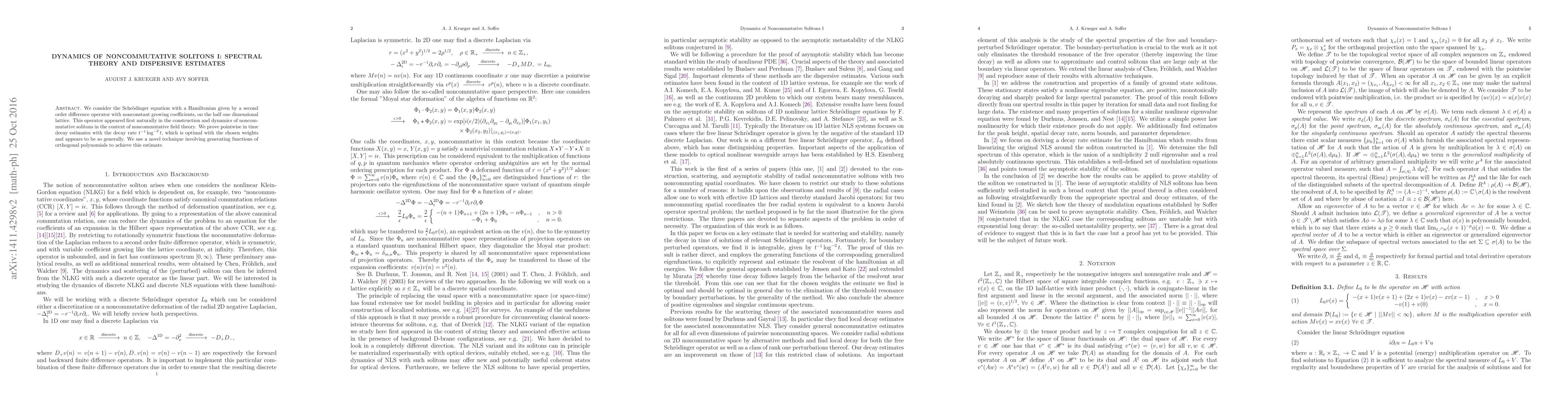 This paper investigates the spectral theory and dispersive estimates for a Schrödinger equation with a noncommutative soliton Hamiltonian on a half-one dimensional lattice. The authors achieve optimal decay estimates using a novel generating function technique involving orthogonal polynomials.