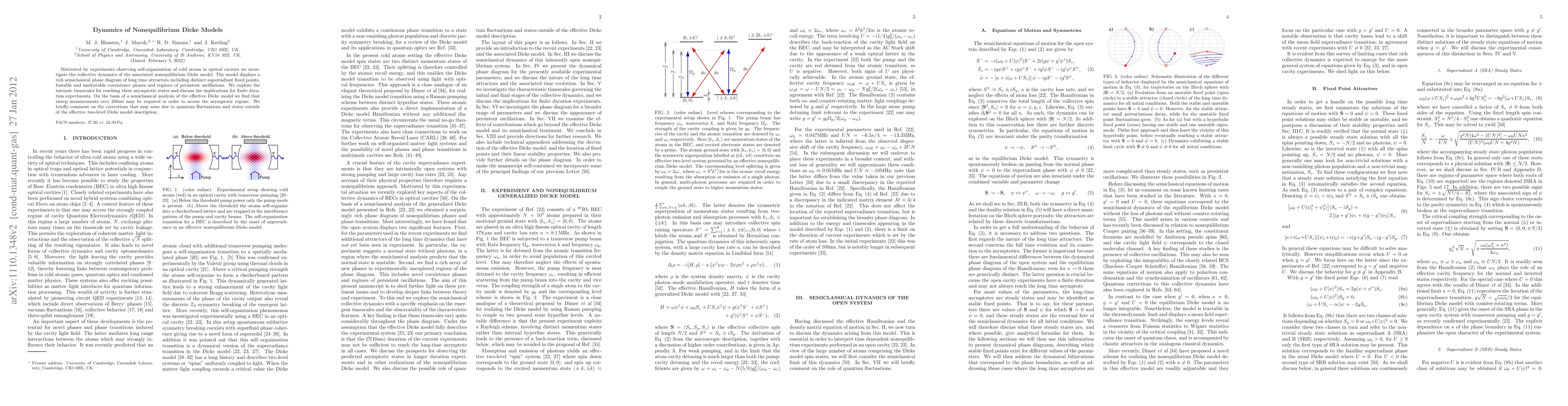 This paper investigates the collective dynamics of nonequilibrium Dicke models, revealing a complex phase diagram with superradiant fixed points, bistable and multistable phases, and persistent oscillations. Semiclassical analysis suggests that 200ms sweep measurements are necessary to observe asymptotic states, while acknowledging potential quantum fluctuation corrections.