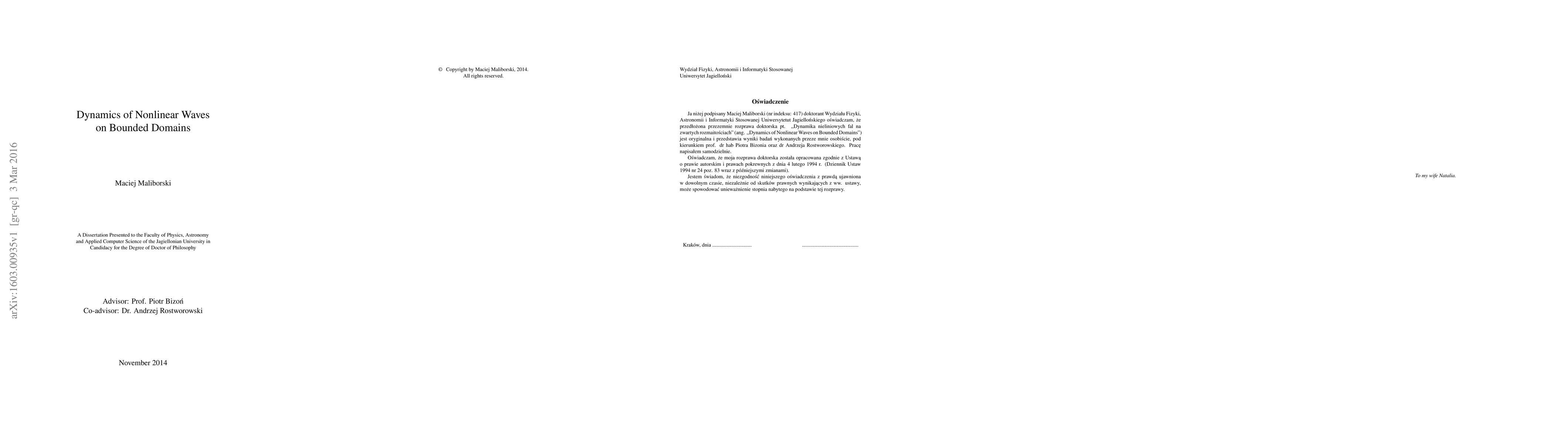 This thesis is concerned with dynamics of conservative nonlinear waves on bounded domains. In general, there are two scenarios of evolution. Either the solution behaves in an oscillatory, quasiperiodic manner or the nonlinear effects cause the energy to concentrate on smaller scales leading to a turbulent behaviour. Which of these two possibilities occurs depends on a model and the initial conditions. In the quasiperiodic scenario there exist very special time-periodic solutions. They result for a delicate balance between dispersion and nonlinear interaction. The main body of this dissertation is concerned with construction (by means of perturbative and numerical methods) of time-periodic solutions for various nonlinear wave equations on bounded domains. While turbulence is mainly associated with hydrodynamics, recent research in General Relativity has also revealed turbulent phenomena. Numerical studies of a self-gravitating massless scalar field in spherical symmetry gave evidence that anti-de Sitter space is unstable against black hole formation. On the other hand there appeared many examples of asymptotically anti-de Sitter solutions which evade turbulent behaviour and appear almost periodic for long times. We discuss here these two contrasting scenarios putting special attention to the construction and properties of strictly time-periodic solutions. We analyze different models where solutions of this type exist. Moreover, we describe similarities and differences among these models concerning properties of time-periodic solutions and methods used for their construction.