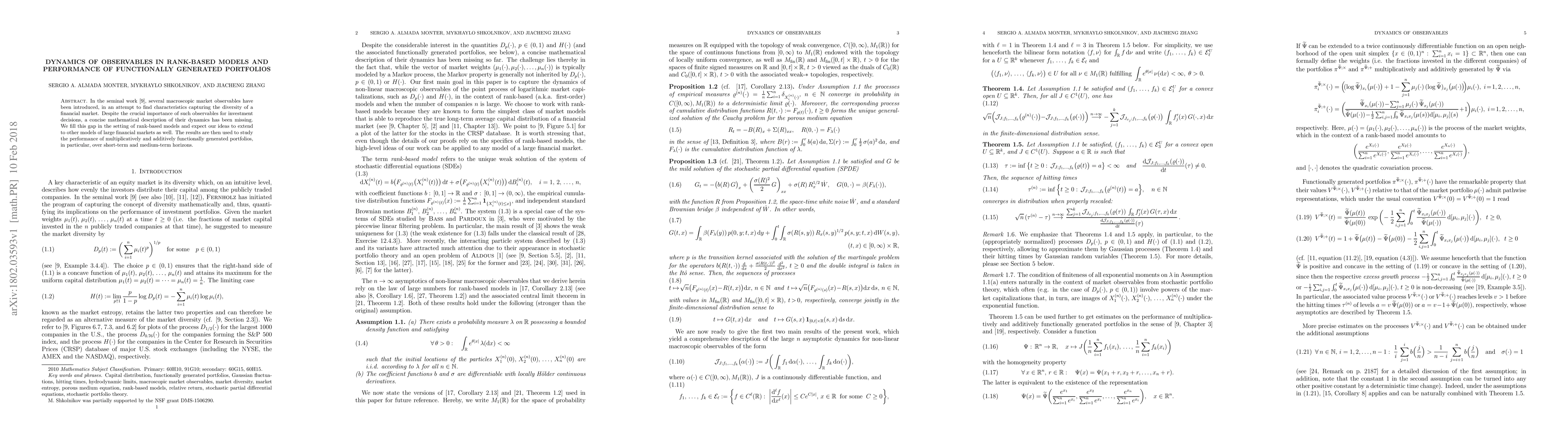 This paper develops a mathematical framework for understanding the dynamics of key market observables in rank-based models, aiming to provide insights for investment decisions. It also evaluates the performance of functionally generated portfolios over various time horizons.