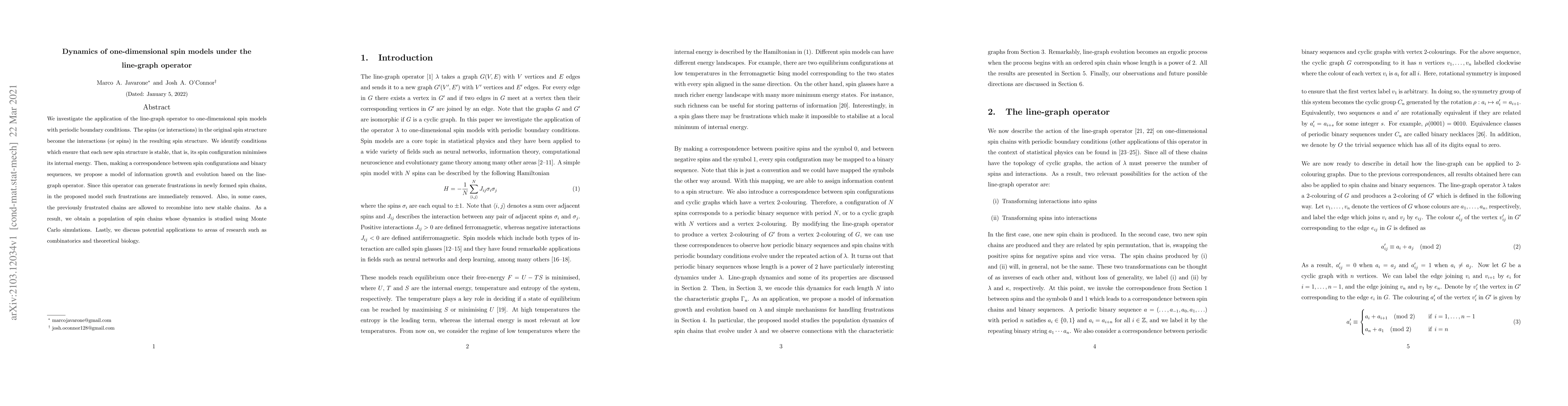 This research explores the use of the line-graph operator on one-dimensional spin models, ensuring stability in new configurations. It proposes an information growth model, removes frustrations, and allows recombination of chains, studying the dynamics via Monte Carlo simulations. Potential applications are discussed in combinatorics and theoretical biology.