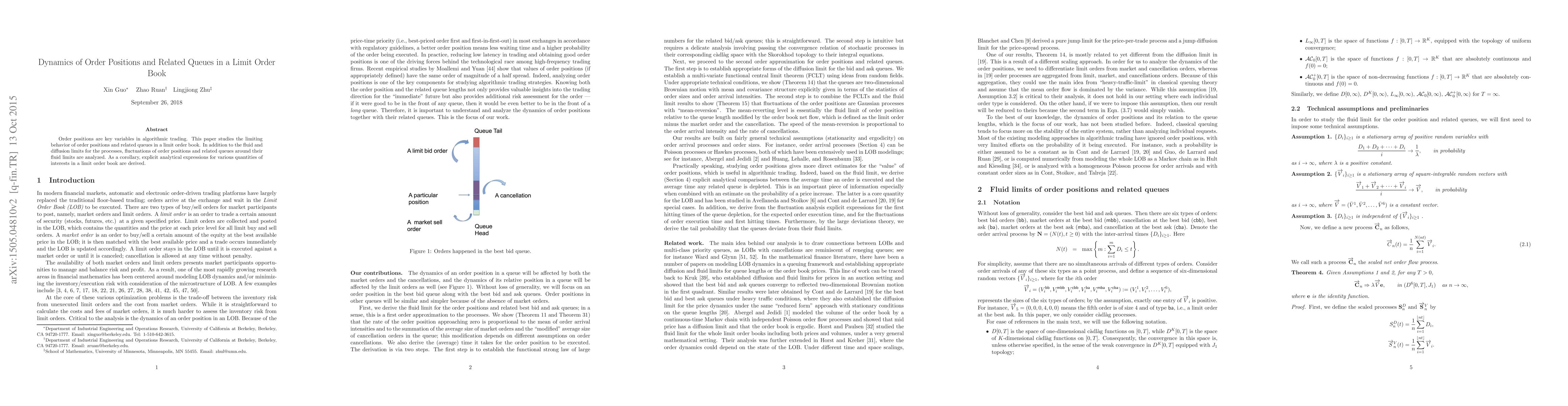 Order positions are key variables in algorithmic trading. This paper studies the limiting behavior of order positions and related queues in a limit order book. In addition to the fluid and diffusion limits for the processes, fluctuations of order positions and related queues around their fluid limits are analyzed. As a corollary, explicit analytical expressions for various quantities of interests in a limit order book are derived.