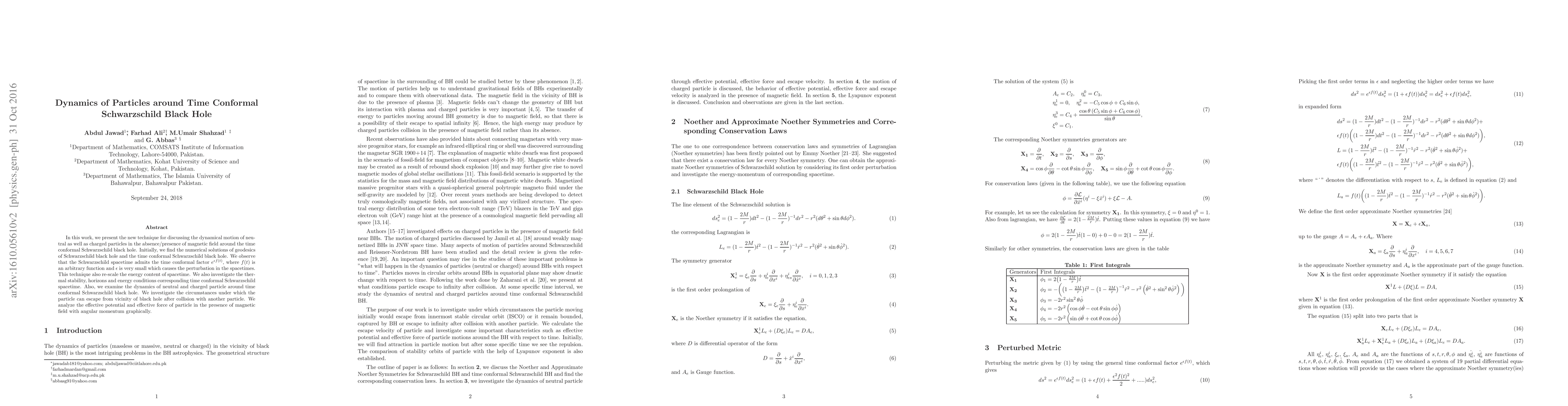 This paper introduces a novel technique to study the dynamics of neutral and charged particles around a time conformal Schwarzschild black hole, examining their motion under various conditions, including magnetic fields. It also investigates the thermal stability, horizons, and energy conditions of this modified spacetime, and analyzes the effective potential and force acting on particles.