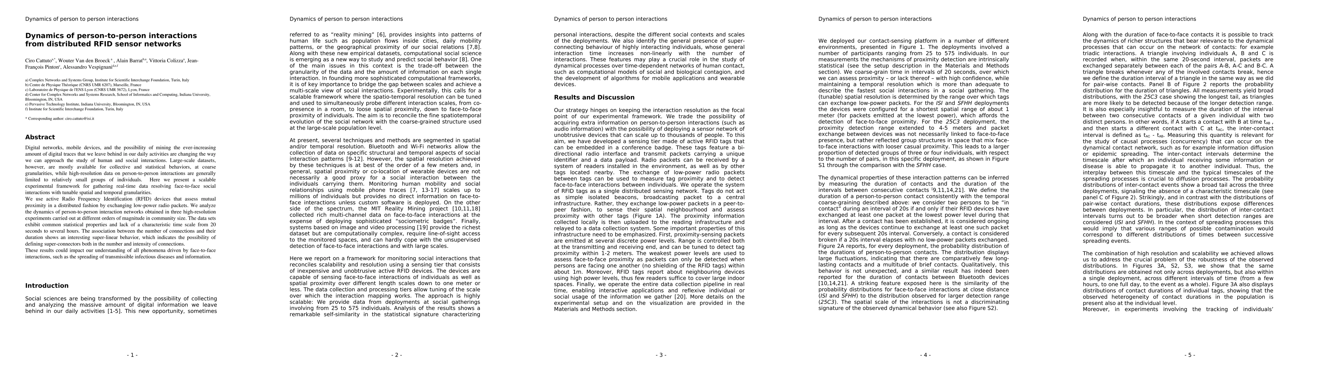 A new experimental framework uses RFID sensors to track person-to-person interactions in real-time, revealing common statistical properties and super-linear behavior among individuals with varying connection durations.