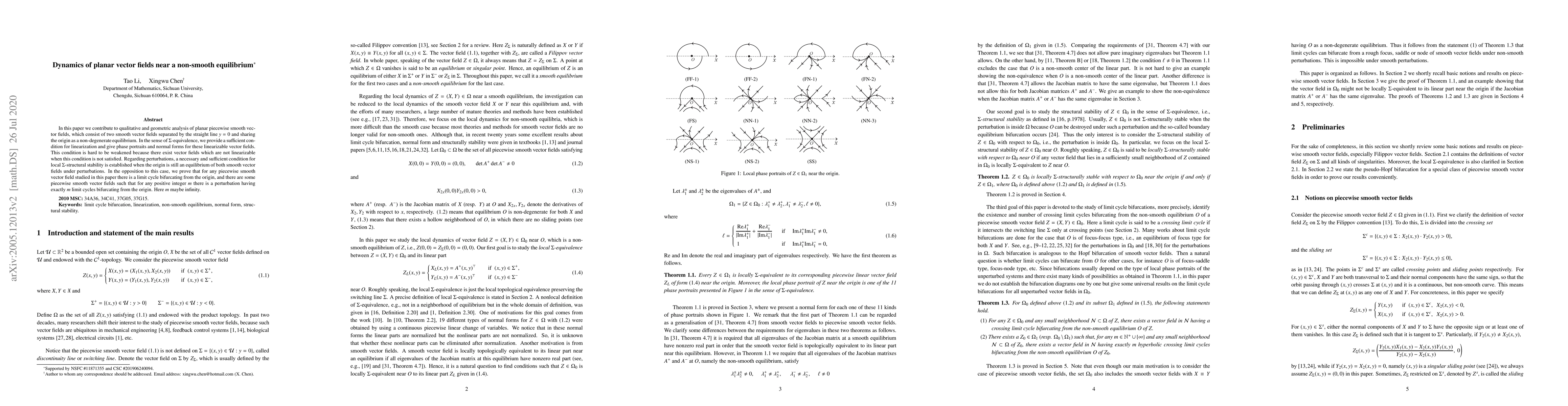 This paper analyzes planar piecewise smooth vector fields with a non-smooth equilibrium at the origin, providing conditions for linearization and structural stability. It demonstrates that under certain conditions, the origin remains an equilibrium under perturbations, while without these conditions, limit cycles bifurcate from the origin, including cases with exactly $m$ limit cycles for any positive integer $m$.