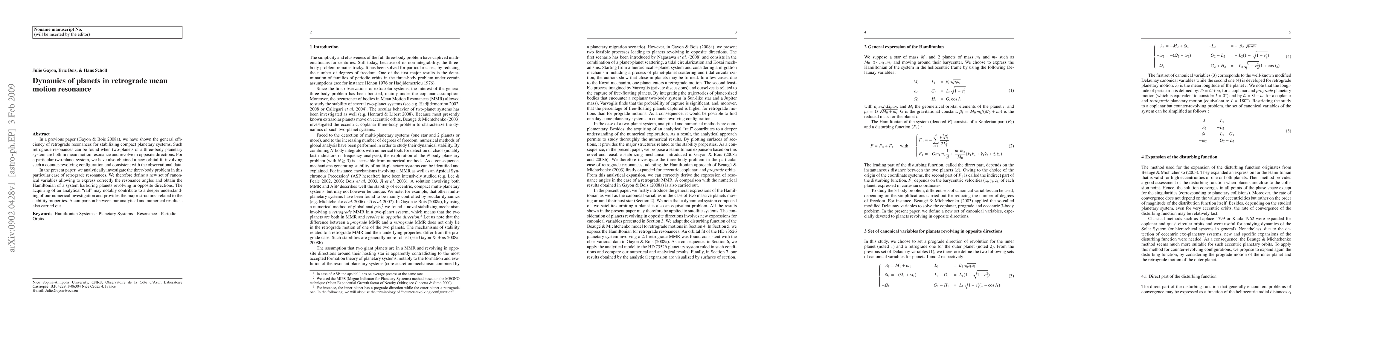 This paper analytically investigates the dynamics of planets in retrograde mean motion resonance within a three-body system, defining new canonical variables and deriving the Hamiltonian for counter-revolving planets. The study provides an analytical framework that complements numerical investigations and enhances understanding of the stability properties of such systems.