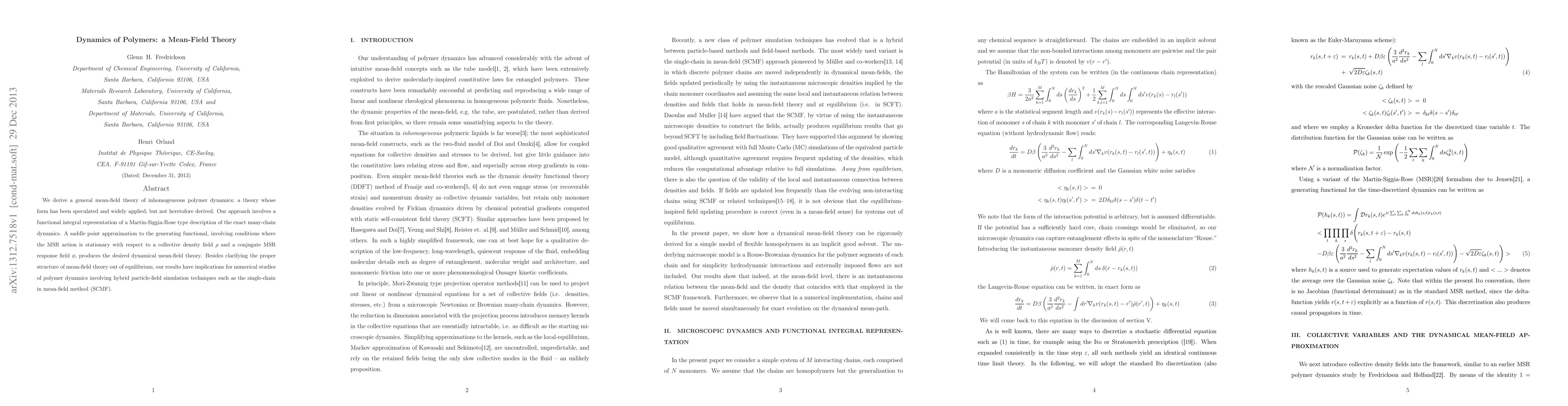 This paper develops a mean-field theory for inhomogeneous polymer dynamics using a Martin-Siggia-Rose functional integral approach. The resulting theory clarifies the dynamics of many polymer chains and has implications for hybrid simulation techniques like the single-chain in mean-field method.