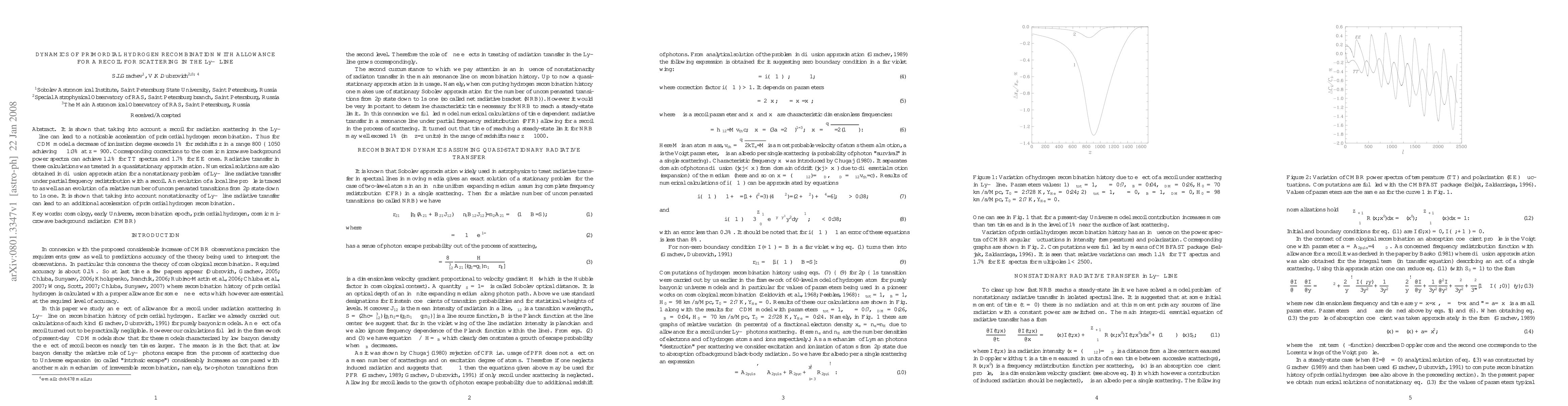 It is shown that taking into account a recoil for radiation scattering in the Ly-alpha line can lead to a noticable acceleration of primordial hydrogen recombination. Thus for LambdaCDM model a decrease of ionization degree exceeds 1% for redshifts z in a range 800 - 1050 achieving approximately 1.3% at z=900. Corresponding corrections to the cosmic microwave background power spectra can achieve 1.1% for TT spectra and 1.7% for EE ones. Radiative transfer in these calculations was treated in a quasistationary approximation. Numerical solutions are also obtained in diffusion approximation for a nonstationary problem of Ly-alpha line radiative transfer under partial frequency redistribution with a recoil. An evolution of a local line profile is traced to as well as an evolution of a relative number of uncompensated transitions from 2p state down to 1s one. It is shown that taking into account nonstationarity of Ly-alpha line radiative transfer can lead to an additional acceleration of primordial hydrogen recombination.