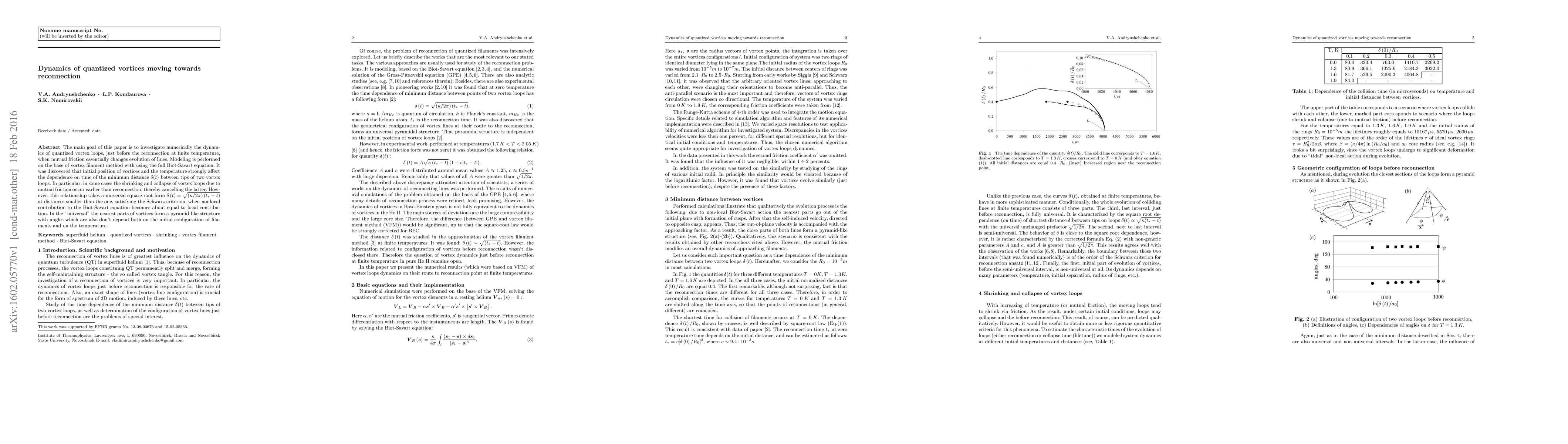 Researchers studied how quantized vortex loops interact at high temperatures, finding a universal square-root relationship between their distance and time, which reveals a pyramid-like structure in the closest parts of the vortices.