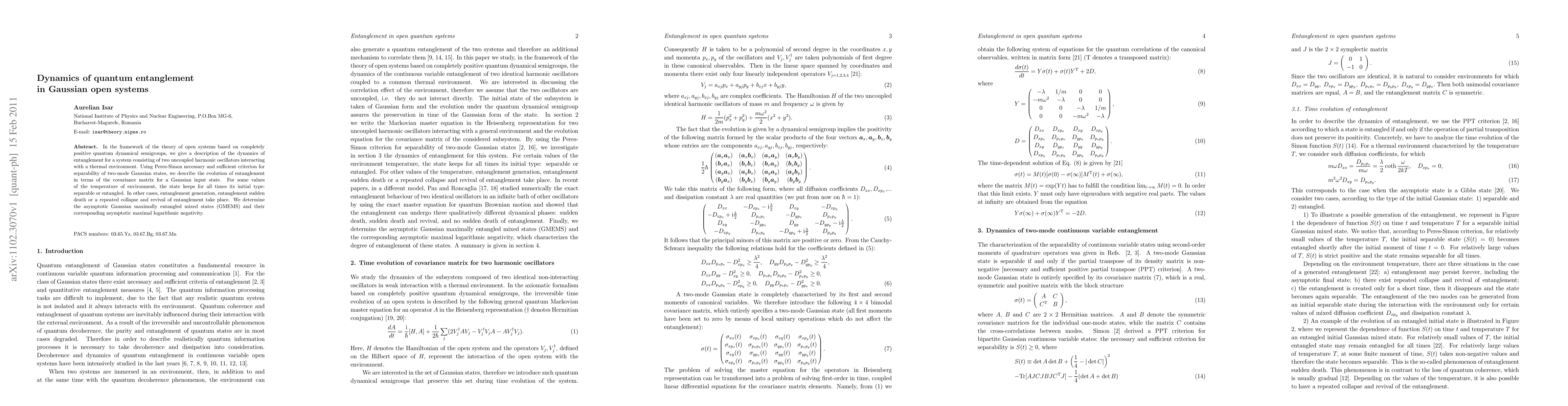This paper explores the dynamics of quantum entanglement in Gaussian open systems using completely positive quantum dynamical semigroups. It reveals that entanglement in two uncoupled harmonic oscillators interacting with a thermal environment can evolve through various states, including generation, sudden death, and collapse-revival phenomena, depending on environmental temperature, and identifies asymptotic Gaussian maximally entangled mixed states and their logarithmic negativity.