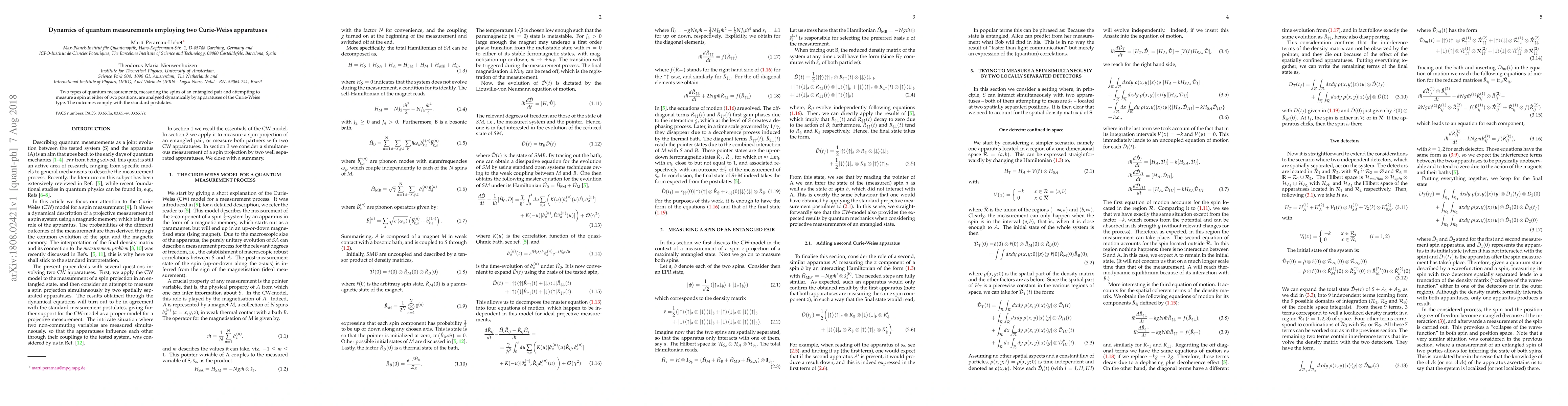 This paper analyzes the dynamics of quantum measurements involving two Curie-Weiss apparatuses measuring entangled spins and single-spin positions, confirming outcomes align with standard quantum postulates. The study provides insights into the behavior of quantum measurements under different apparatus configurations.