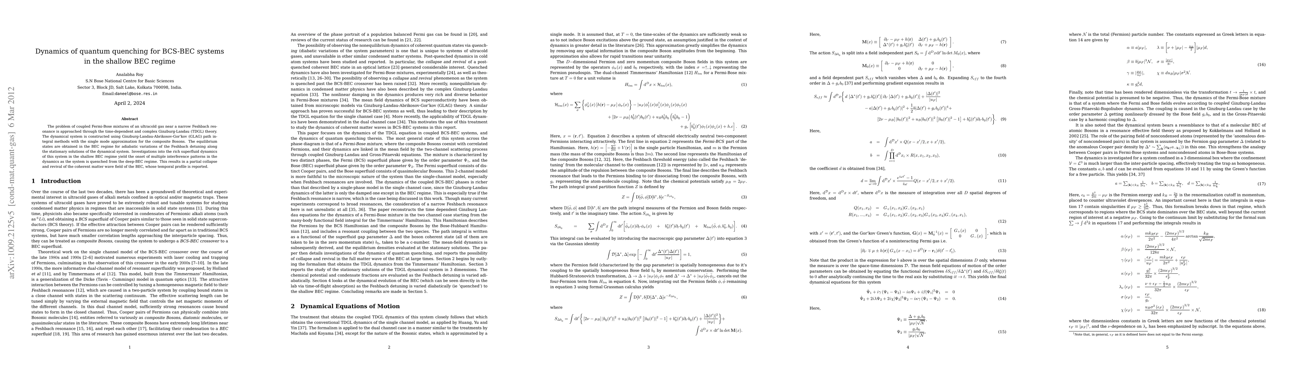 The problem of coupled Fermi-Bose mixtures of an ultracold gas near a narrow Feshbach resonance is approached through the time-dependent and complex Ginzburg-Landau (TDGL) theory. The dynamical system is constructed using Ginzburg-Landau-Abrikosov-Gor'kov (GLAG) path integral methods with the single mode approximation for the composite Bosons, and the equilibrium states are obtained in the BEC regime for adiabatic variations of the Feshbach detuning along the stationary solutions of the dynamical system. Investigations into the rich superfluid dynamics of this system in the shallow BEC regime yields the onset of multiple interference patterns in the dynamics as the system is quenched from the deep-BEC regime. This results in a partial collapse and revival of the coherent matter wave field of the BEC, whose temporal profile is reported.