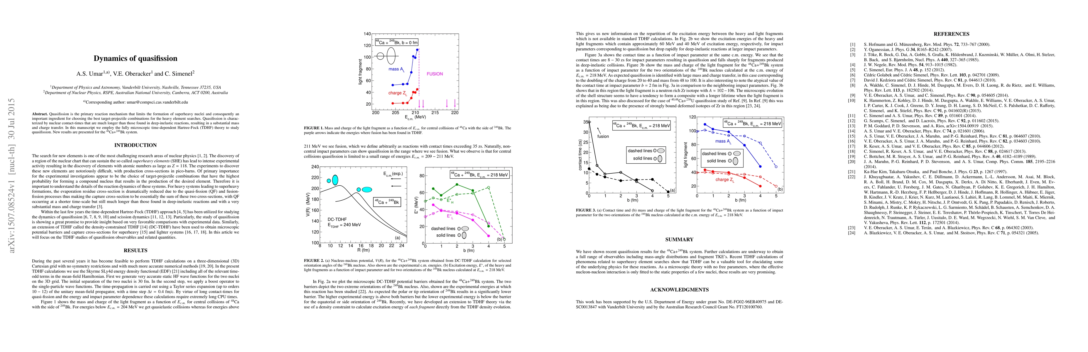 Quasifission is the primary reaction mechanism that limits the formation of superheavy nuclei and consequently an important ingredient for choosing the best target-projectile combinations for the heavy element searches. Quasifission is characterized by nuclear contact-times that are much longer than those found in deep-inelastic reactions, resulting in a substantial mass and charge transfer. In this manuscript we employ the fully microscopic time-dependent Hartree-Fock (TDHF) theory to study quasifission. New results are presented for the $^{48}$Ca+$^{249}$Bk system.