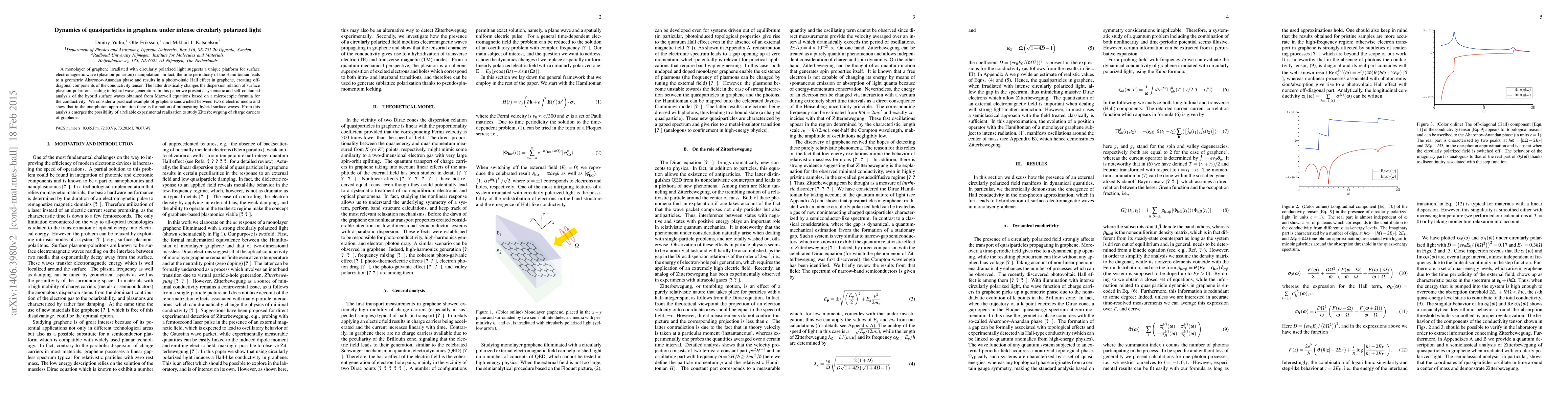 A monolayer of graphene irradiated with circularly polarized light suggests a unique platform for surface electromagnetic wave (plasmon-polariton) manipulation. In fact, the time periodicity of the Hamiltonian leads to a geometric Aharonov-Anandan phase and results in a photovoltaic Hall effect in graphene, creating off-diagonal components of the conductivity tensor. The latter drastically changes the dispersion relation of surface plasmon-polaritons, leading to hybrid wave generation. In this paper we present a systematic and self-contained analysis of the hybrid surface waves obtained from Maxwell equations based on a microscopic formula for the conductivity. We consider a practical example of graphene sandwiched between two dielectric media and show that in the one-photon approximation there is formation of propagating hybrid surface waves. From this analysis emerges the possibility of a reliable experimental realization to study Zitterbewegung of charge carriers of graphene.