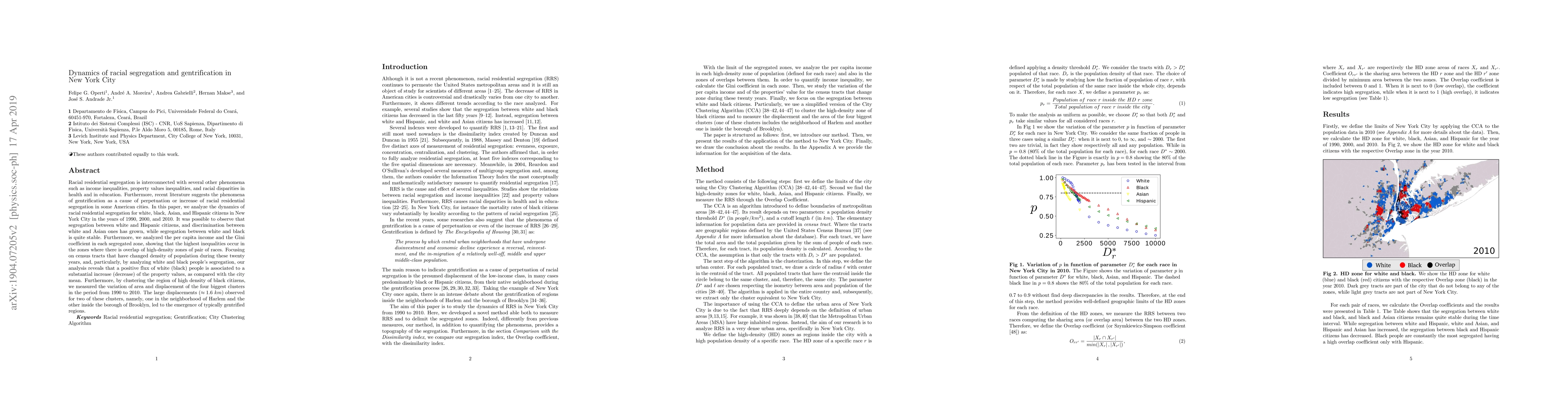 This paper examines racial residential segregation dynamics in New York City from 1990 to 2010, finding increased segregation between whites and Hispanics, and Asians, with stable segregation between whites and blacks. The study links gentrification to rising property values and displacement of black communities, particularly in Harlem and Brooklyn, highlighting the intersection of racial segregation and economic inequality.