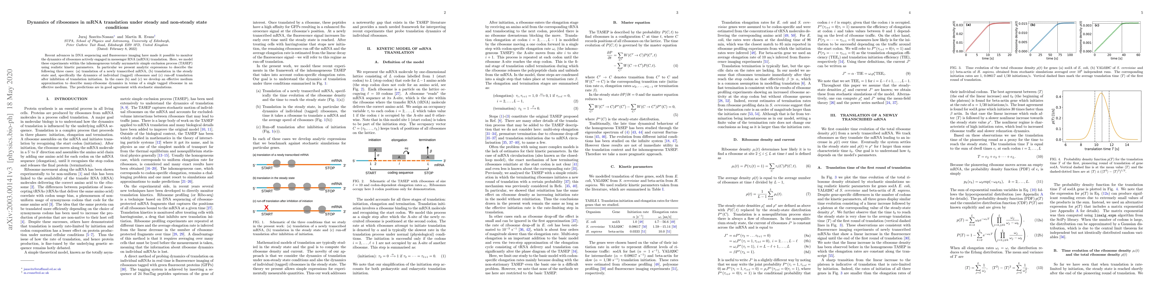 This study models mRNA translation dynamics using a mathematical model that predicts how ribosomes move along messenger RNA in steady and non-steady states, with results matching stochastic simulations.