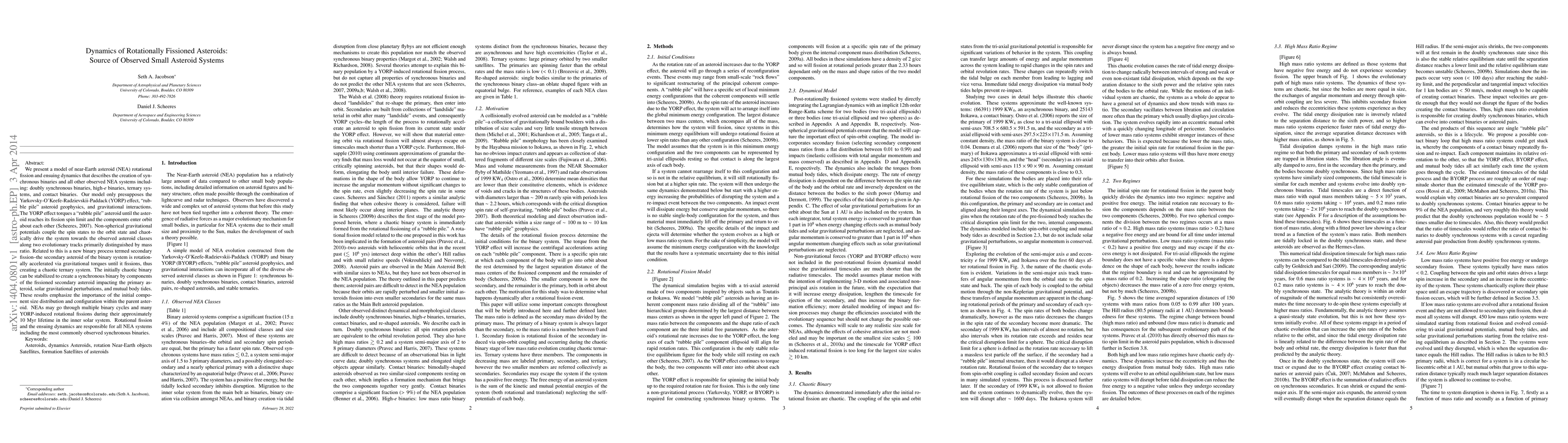 This paper models the rotational fission of near-Earth asteroids (NEAs) driven by the YORP effect, explaining the formation of various asteroid systems including binaries and ternary systems. The study highlights the role of gravitational interactions and the initial size distribution of components in the parent asteroid's evolution.