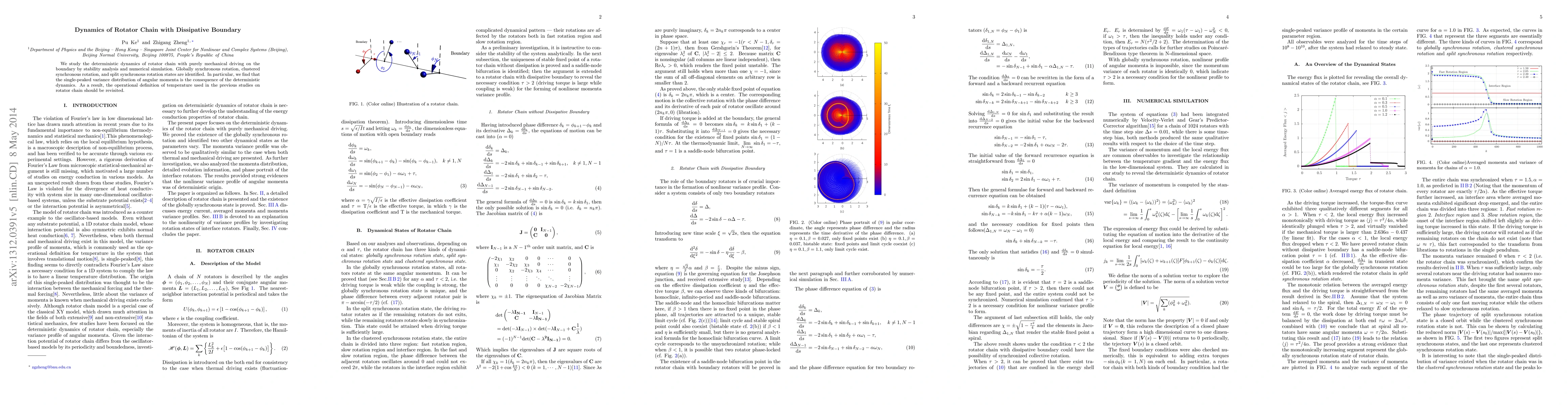 We study the deterministic dynamics of rotator chain that subjected to purely mechanical driving on the boundary by stability analysis and numerical simulation. Globally synchronous rotation, clustered synchronous rotation, and split synchronous rotation states are identified. In particular, we find that the single-peaked variance distribution of angular momenta is the consequence of the deterministic dynamics. As a result, the operational definition of temperature used in the previous studies on rotator chain should be revisited.