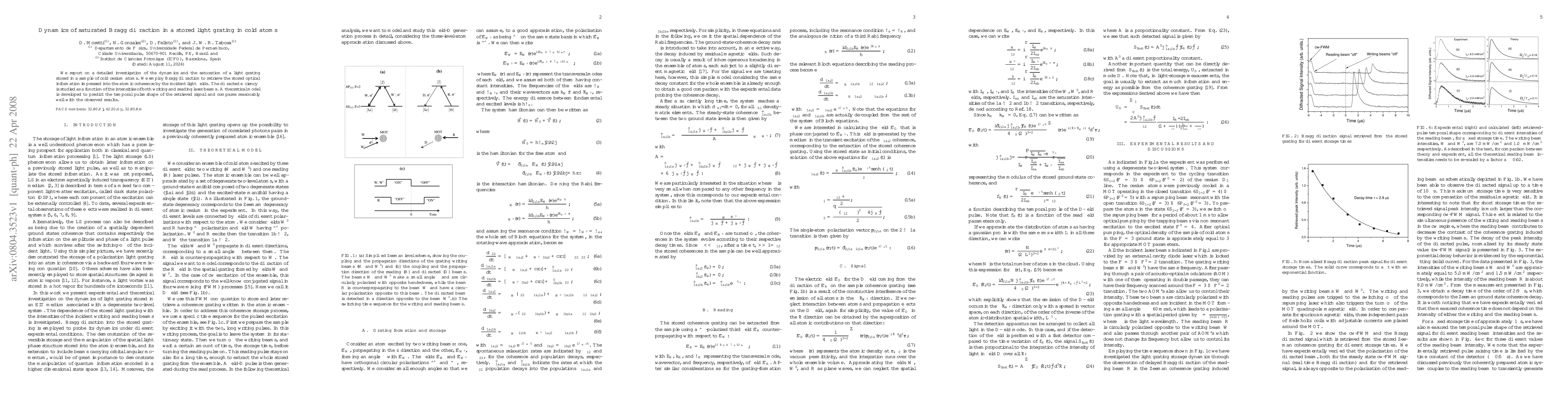 This paper investigates the dynamics and saturation of a light grating stored in cold cesium atoms using Bragg diffraction. The study analyzes the diffracted efficiency relative to the intensities of writing and reading laser beams, and a theoretical model is developed to predict the temporal pulse shape of the retrieved signal, which aligns well with experimental observations.