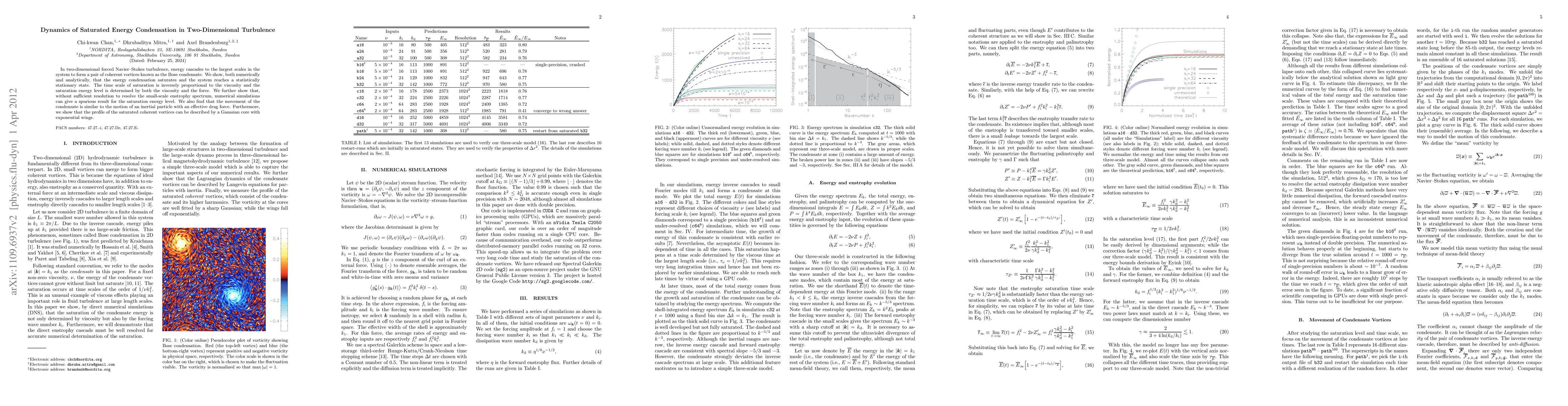 This paper investigates the dynamics of saturated energy condensation in two-dimensional turbulence, demonstrating that the energy cascades to form a coherent Bose condensate that saturates at a statistically stationary state. The saturation time and energy level are shown to depend on viscosity and forcing, with numerical simulations potentially yielding incorrect results without sufficient resolution.