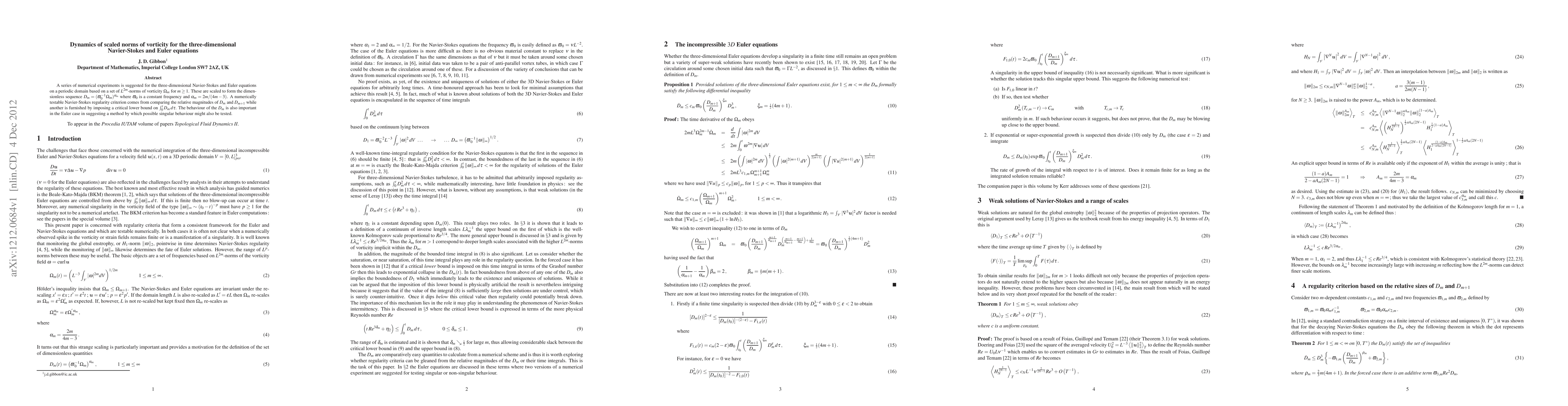 A series of numerical experiments is suggested for the three-dimensional Navier-Stokes and Euler equations on a periodic domain based on a set of $L^{2m}$-norms of vorticity $\Omega_{m}$ for $m\geq 1$. These are scaled to form the dimensionless sequence $D_{m}= (\varpi_{0}^{-1}\Omega_{m})^{\alpha_{m}}$ where $\varpi_{0}$ is a constant frequency and $\alpha_{m} = 2m/(4m-3)$. A numerically testable Navier-Stokes regularity criterion comes from comparing the relative magnitudes of $D_{m}$ and $D_{m+1}$ while another is furnished by imposing a critical lower bound on $\int_{0}^{t}D_{m}\,d\tau$. The behaviour of the $D_{m}$ is also important in the Euler case in suggesting a method by which possible singular behaviour might also be tested.