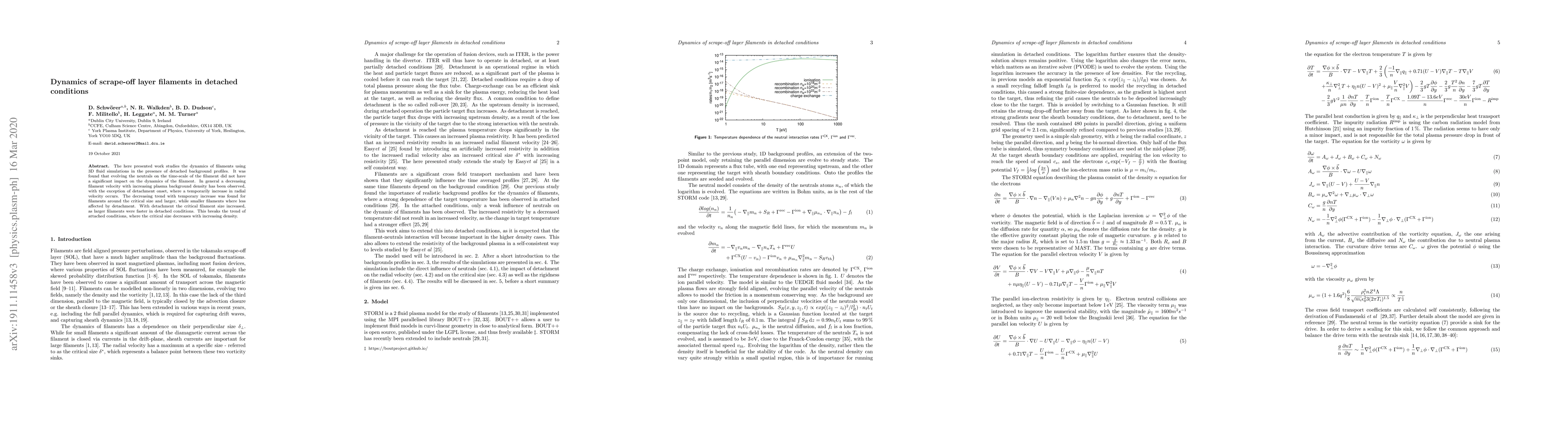 Researchers used 3D fluid simulations to study scrape-off layer filaments in detached conditions and found that filament velocity decreases with increasing plasma background density, except at detachment onset where radial velocity temporarily increases.