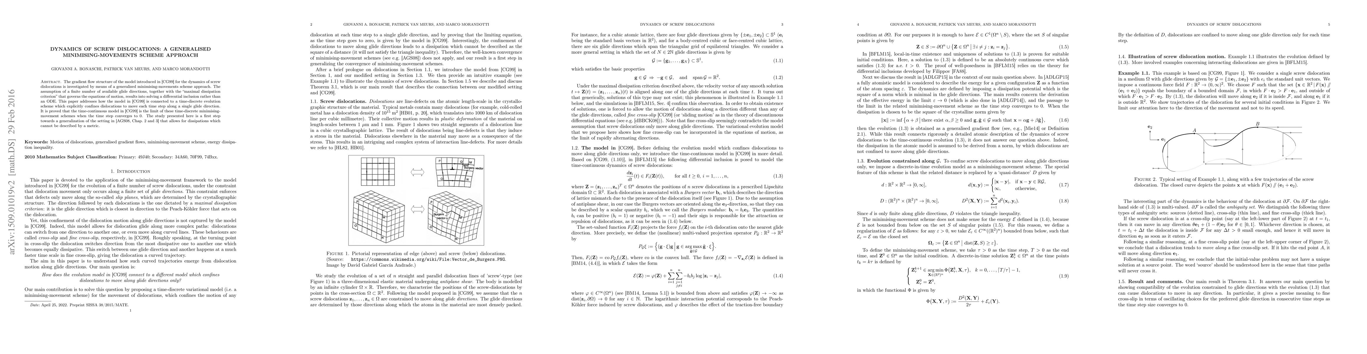 Researchers developed a generalized approach to simulate screw dislocations using a time-discrete scheme that converges to a continuous model, enabling the study of dissipations not described by traditional metrics.