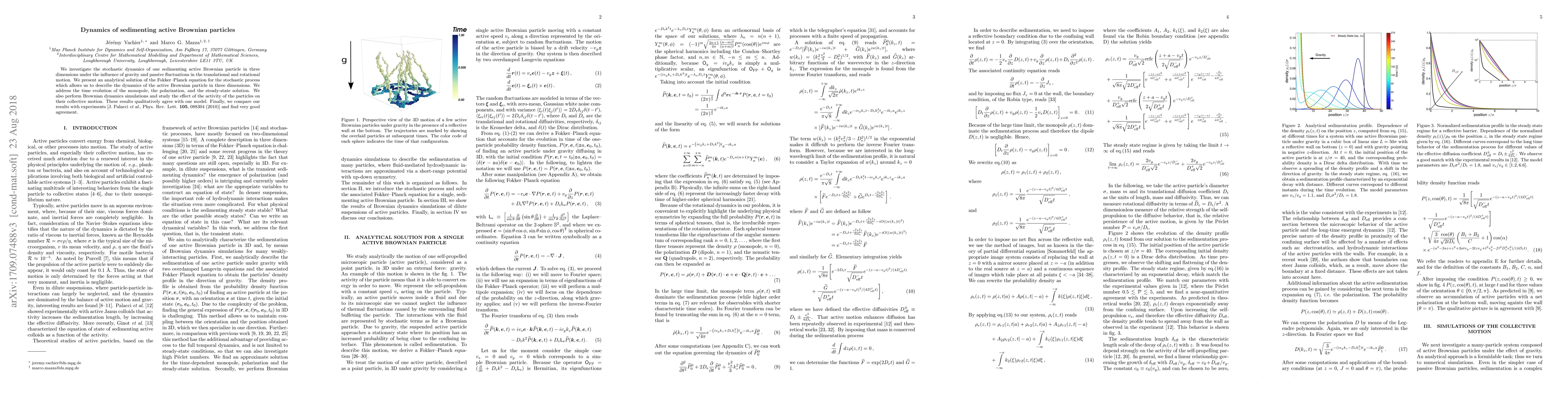 The paper presents an analytical method to solve the Fokker-Planck equation for sedimenting active Brownian particles, providing a comprehensive description of their dynamics in three dimensions under gravity and confining walls.