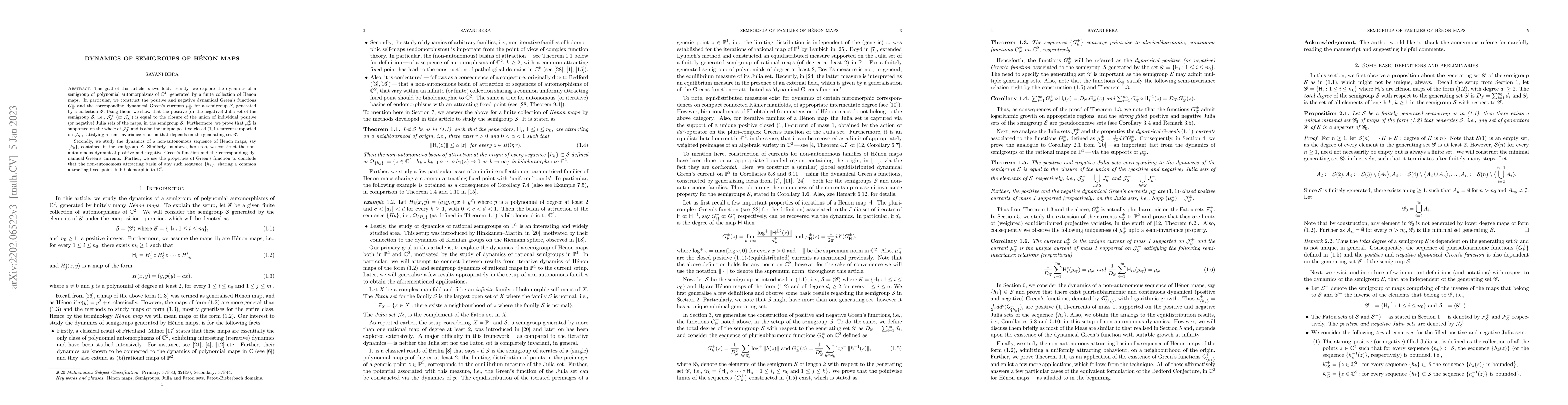This paper explores the dynamics of semigroups generated by Hénon maps, constructing dynamical Green's functions and currents to show the relationship between the Julia sets of the semigroup and its generators. It also investigates non-autonomous sequences of Hénon maps, proving that their non-autonomous attracting basins are biholomorphic to $\mathbb{C}^2$.