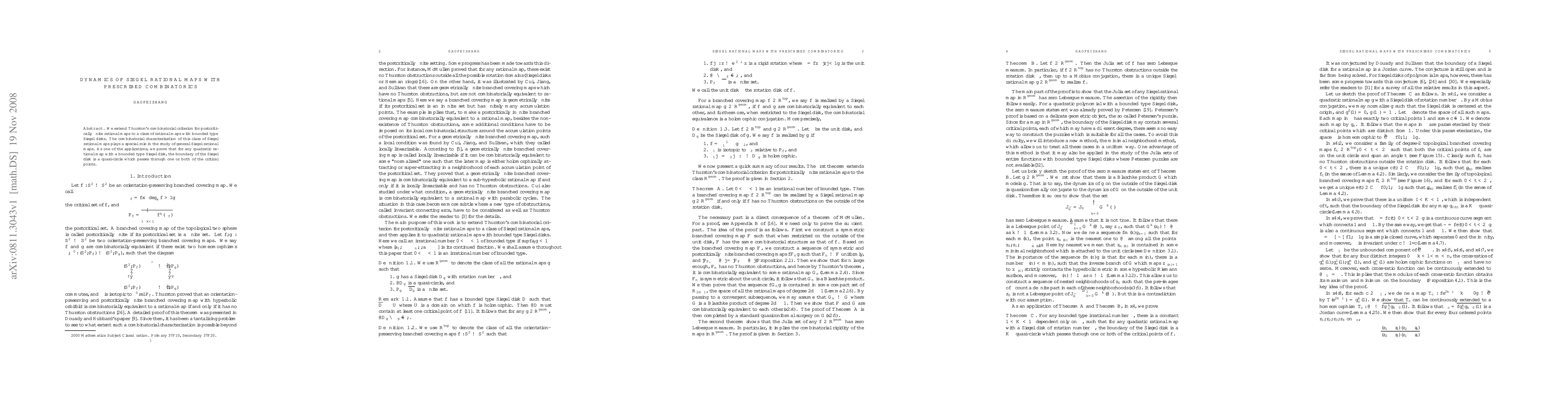 The paper extends Thurston's combinatorial criterion for postcritically finite rational maps to a class of Siegel rational maps with bounded type Siegel disks, characterizing this class combinatorially and proving properties of their dynamics.