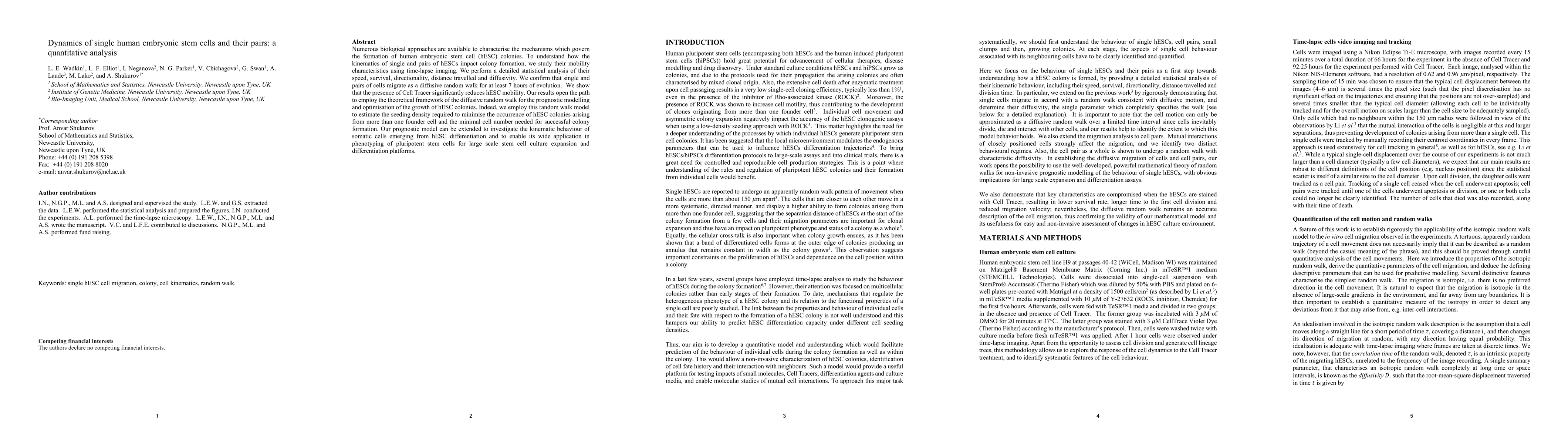 A study using time-lapse imaging analyzed the mobility of single human embryonic stem cells (hESCs) and pairs, finding they move as a random walk and that Cell Tracer reduces hESC mobility. The findings pave the way for predictive modeling of hESC colony growth.