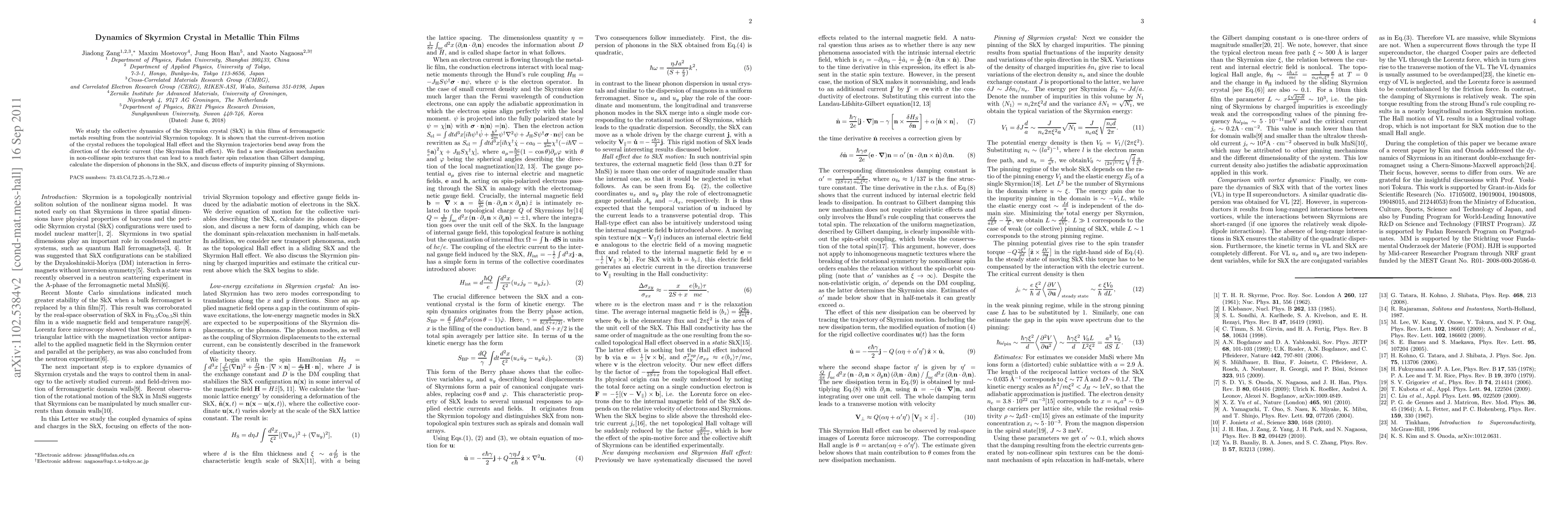This paper investigates the dynamics of Skyrmion crystals in metallic thin films, revealing that current-driven motion reduces the topological Hall effect and causes the Skyrmion Hall effect. It identifies a new dissipation mechanism in non-collinear spin textures leading to faster spin relaxation than Gilbert damping.