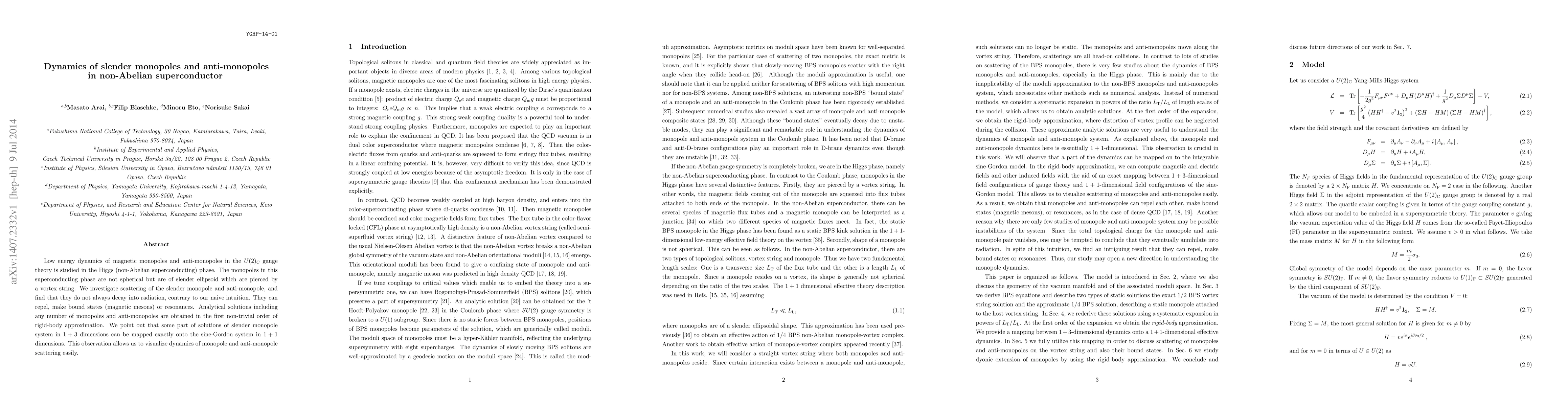 This paper studies the low-energy dynamics of slender monopoles and anti-monopoles in a U(2) gauge theory superconductor, revealing complex scattering behaviors including repulsion, bound states, and resonances, contrary to expectations. Analytical solutions in the rigid-body approximation map part of the system onto the sine-Gordon model, facilitating visualization of the scattering dynamics.