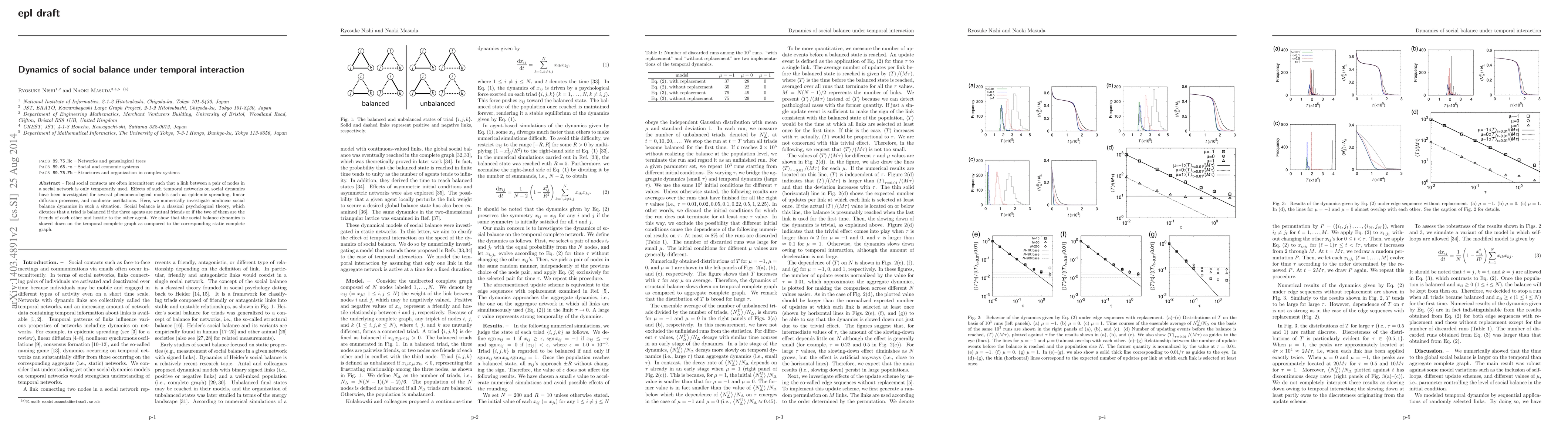 This paper investigates how social balance dynamics are affected by temporal interactions in social networks. It finds that social balance processes are slowed down in temporal networks compared to static networks, highlighting the impact of intermittent links on social dynamics.
