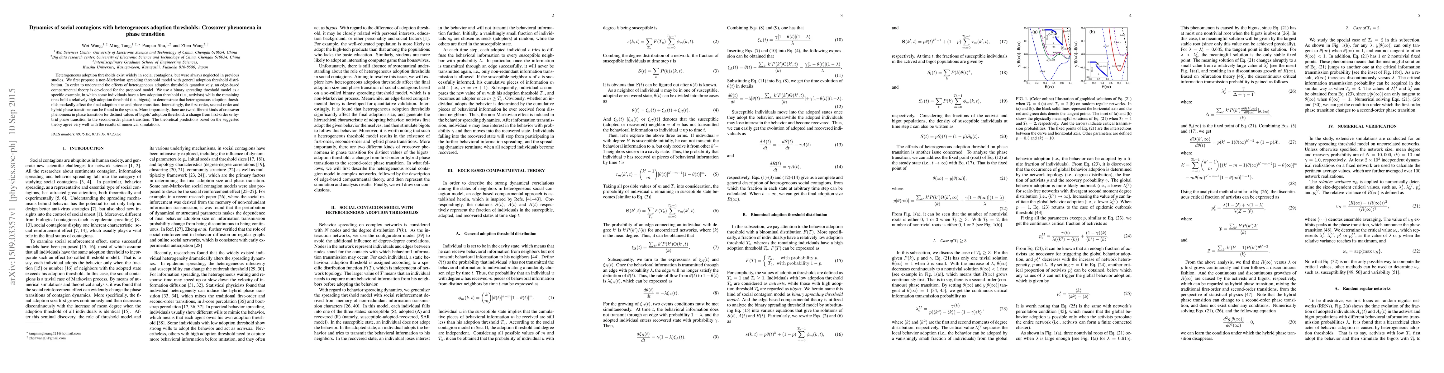 This paper proposes a non-Markovian model for social contagions with varied adoption thresholds and demonstrates its effects using an edge-based compartmental theory. It reveals distinct crossover phenomena in phase transitions due to different adoption threshold values, highlighting the significance of heterogeneity in final adoption size and transitions.