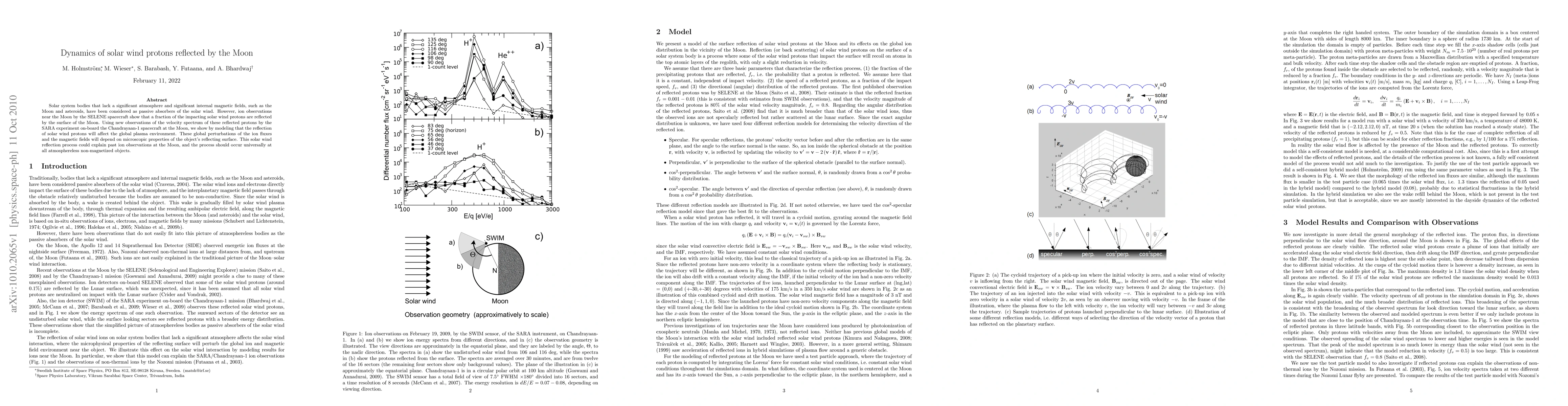 This paper investigates how solar wind protons are reflected by the Moon's surface, revealing that a fraction of these protons are redirected, impacting the global plasma environment. The study suggests that this reflection process, dependent on the Moon's surface properties, occurs universally among other atmosphereless, non-magnetized bodies in the solar system.