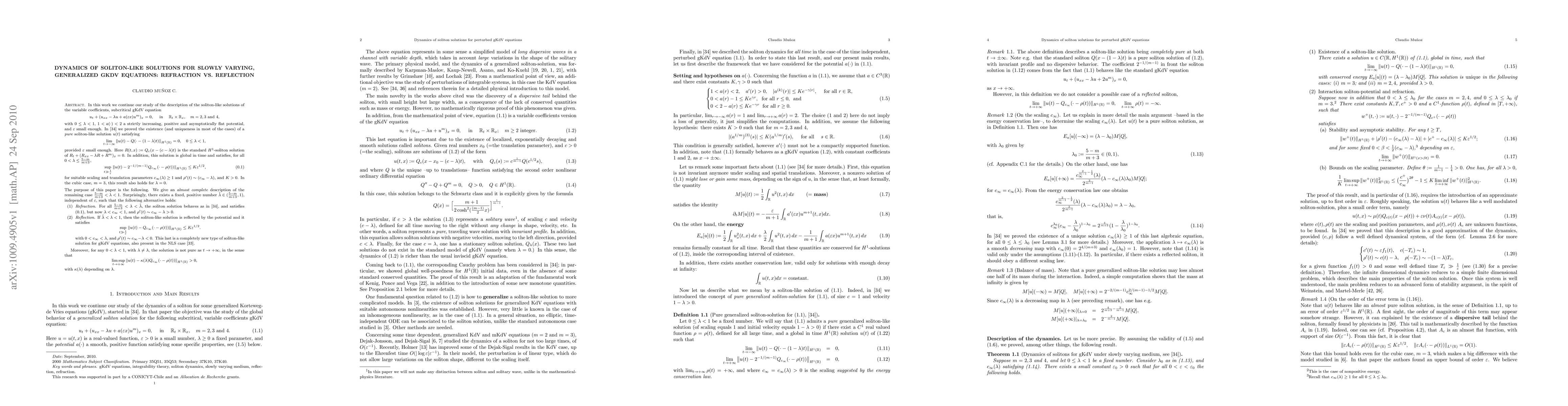 This paper investigates soliton-like solutions for slowly varying, subcritical gKdV equations, revealing that they either refract or reflect based on initial energy, introducing a new type of soliton behavior. It also proves that these solutions are not pure at infinity, differing from standard gKdV solitons.