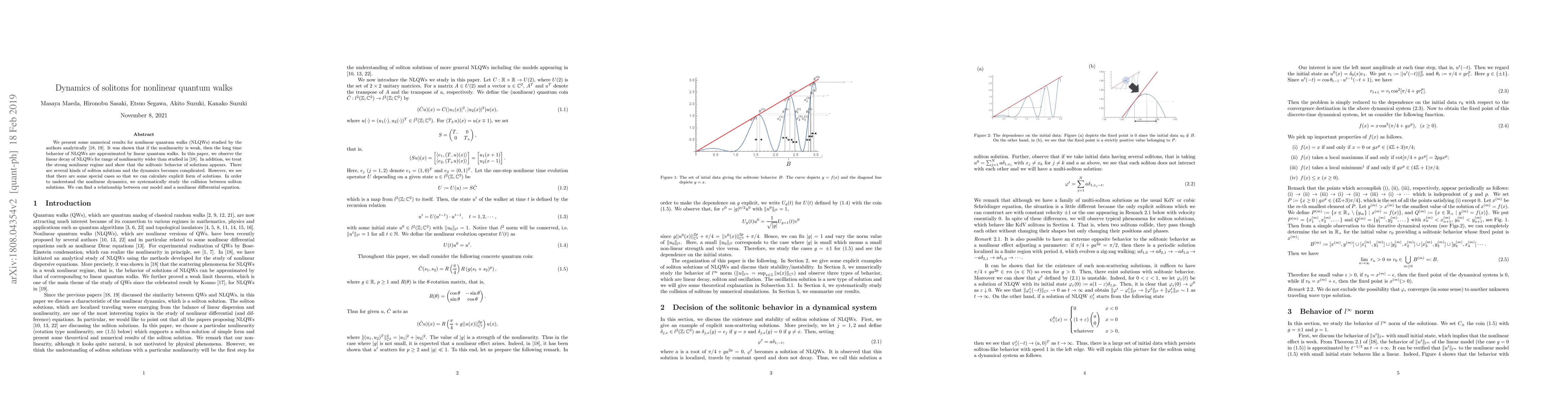 The paper presents detailed numerical analysis of NLQWs, identifying and characterizing soliton solutions and their collision dynamics in both weak and strong nonlinear regimes.