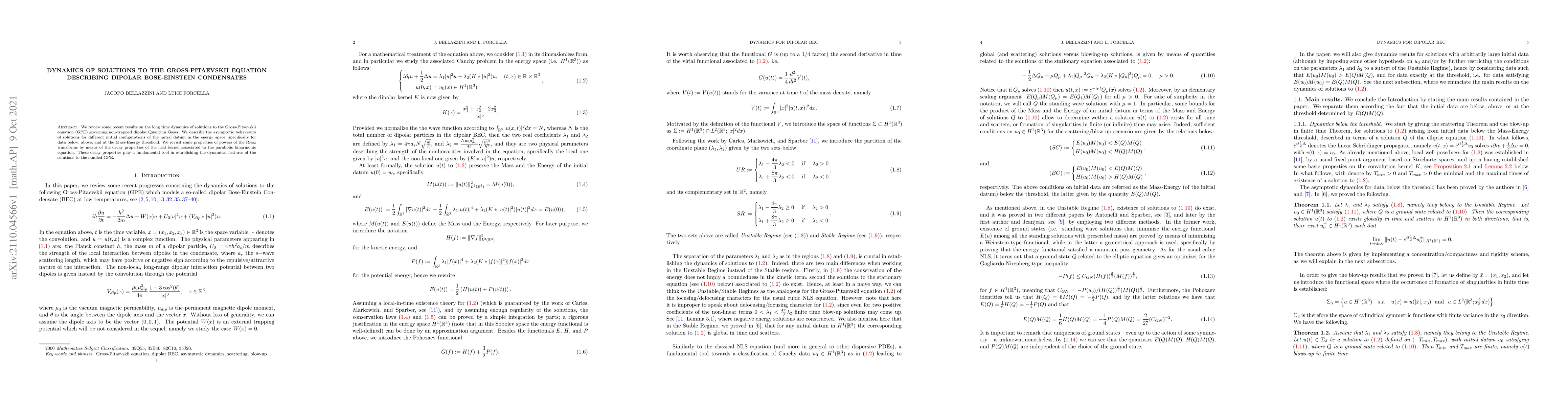 This paper reviews recent findings on the long-term dynamics of the Gross-Pitaevskii equation for dipolar Bose-Einstein condensates, focusing on the asymptotic behavior of solutions under different initial conditions. It employs the decay properties of the heat kernel associated with the parabolic biharmonic equation to analyze these dynamics.