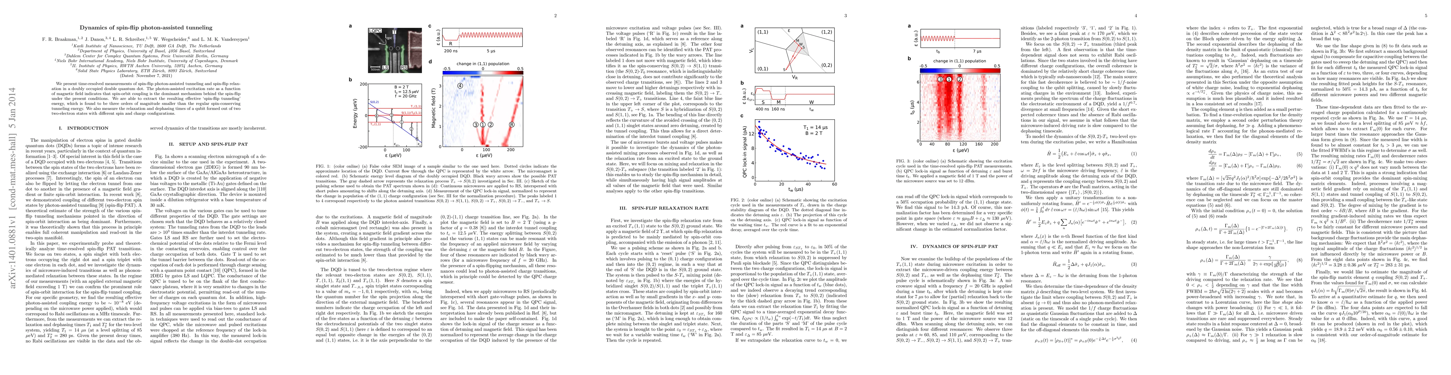 This study investigates spin-flip photon-assisted tunneling in a double quantum dot, revealing that spin-orbit coupling dominates the spin-flip process. The effective "spin-flip tunneling" energy is three orders of magnitude smaller than regular spin-conserving tunneling energy, and the research also measures qubit relaxation and dephasing times.