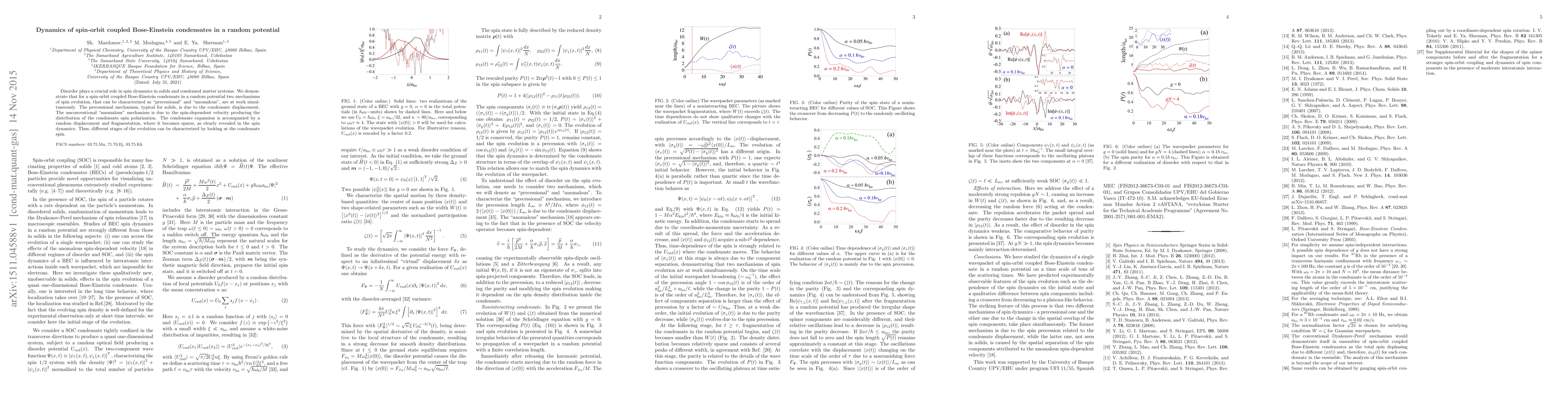 Disorder plays a crucial role in spin dynamics in solids and condensed matter systems. We demonstrate that for a spin-orbit coupled Bose-Einstein condensate in a random potential two mechanisms of spin evolution, that can be characterized as "precessional" and "anomalous", are at work simultaneously. The precessional mechanism, typical for solids, is due to the condensate displacement. The unconventional "anomalous" mechanism is due to the spin-dependent velocity producing the distribution of the condensate spin polarization. The condensate expansion is accompanied by a random displacement and fragmentation, where it becomes sparse, as clearly revealed in the spin dynamics. Thus, different stages of the evolution can be characterized by looking at the condensate spin.