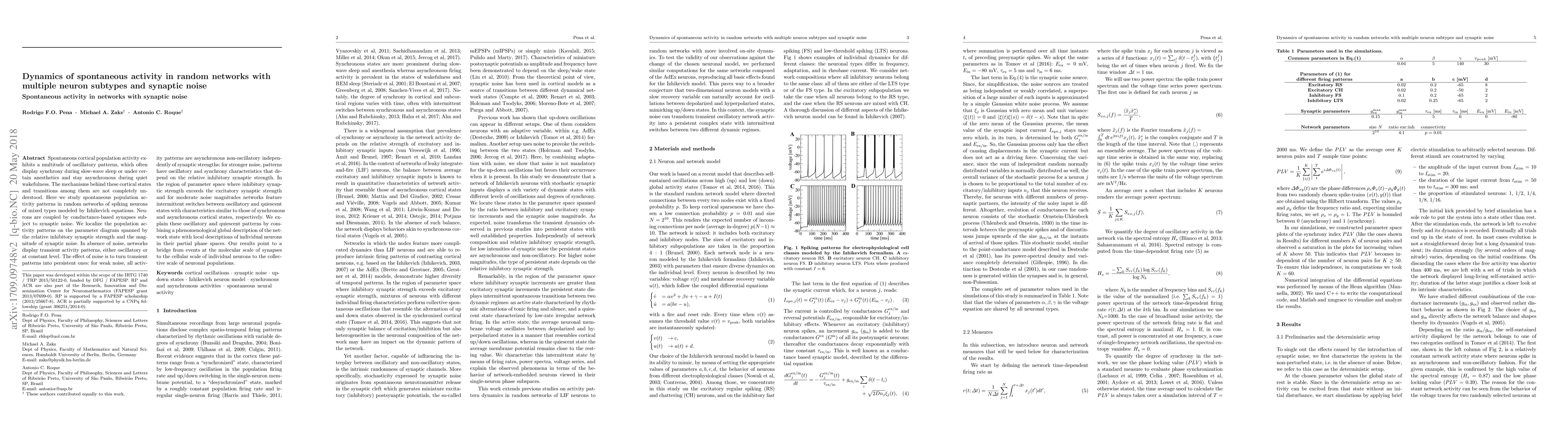 This paper investigates spontaneous activity in random networks of mixed-type spiking neurons, revealing how synaptic noise influences activity patterns. It finds that noise transforms transient patterns into persistent ones, leading to oscillatory and synchronous states dependent on inhibitory synaptic strength, thus bridging molecular, cellular, and population dynamics.