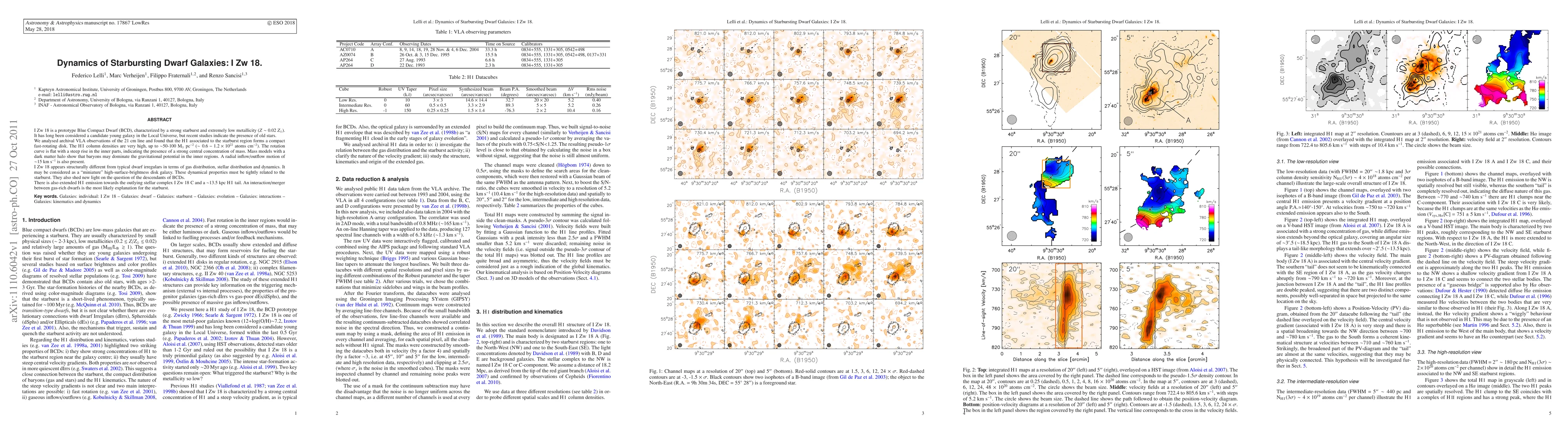 I Zw 18, a Blue Compact Dwarf galaxy with a strong starburst and low metallicity, exhibits a compact, fast-rotating HI disk and a central mass concentration, suggesting baryons dominate the inner gravitational potential. The galaxy's unique dynamics and structure hint at a past interaction or merger, influencing its starburst activity.
